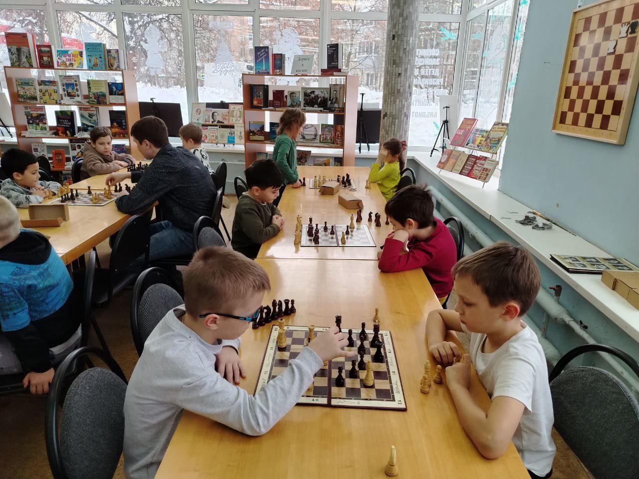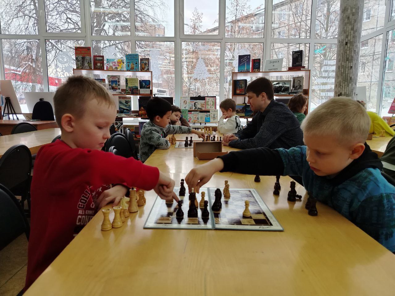 В библиотеке прошло очередное теоретическое занятие клуба любителей шахмат "Белая ладья". На этом занятии юные шахматисты тренировались ставить мат ферзем и королем в конце партии. После теоретической части дети сыграли несколько партий между собой.
