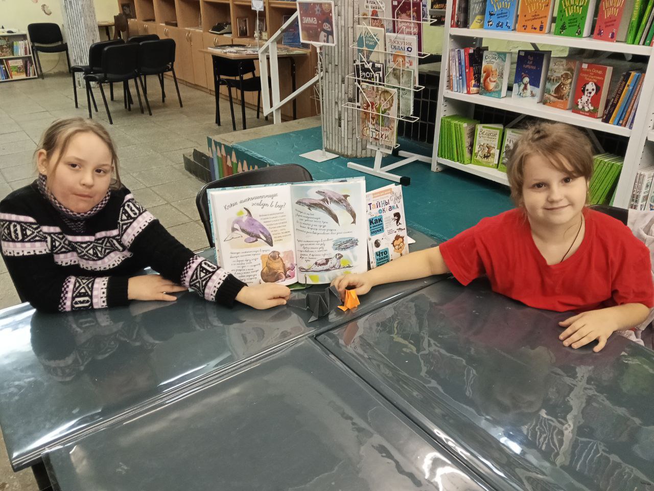 В библиотеке в рамках кружка оригами "Журавлик" прошёл мастер-класс "Усатый тюлень". Сотрудники библиотеки рассказали детям о жизни северных животных, характерном облике тюленей и особенностях поведения. После чего ребята приступили к изготовлению поделок. Совместное творчество стало отличным способом интересно провести время, развить творческие способности и поучаствовать в увлекательно-познавательной деятельности.