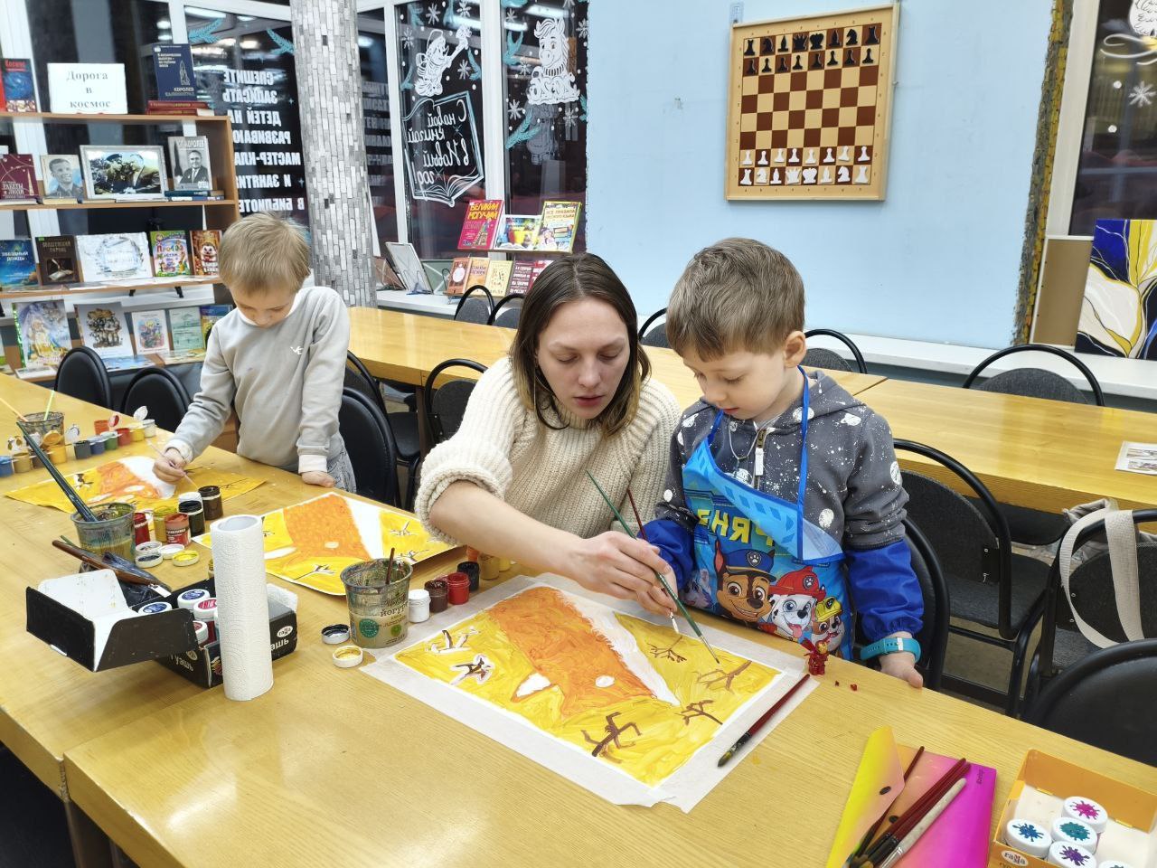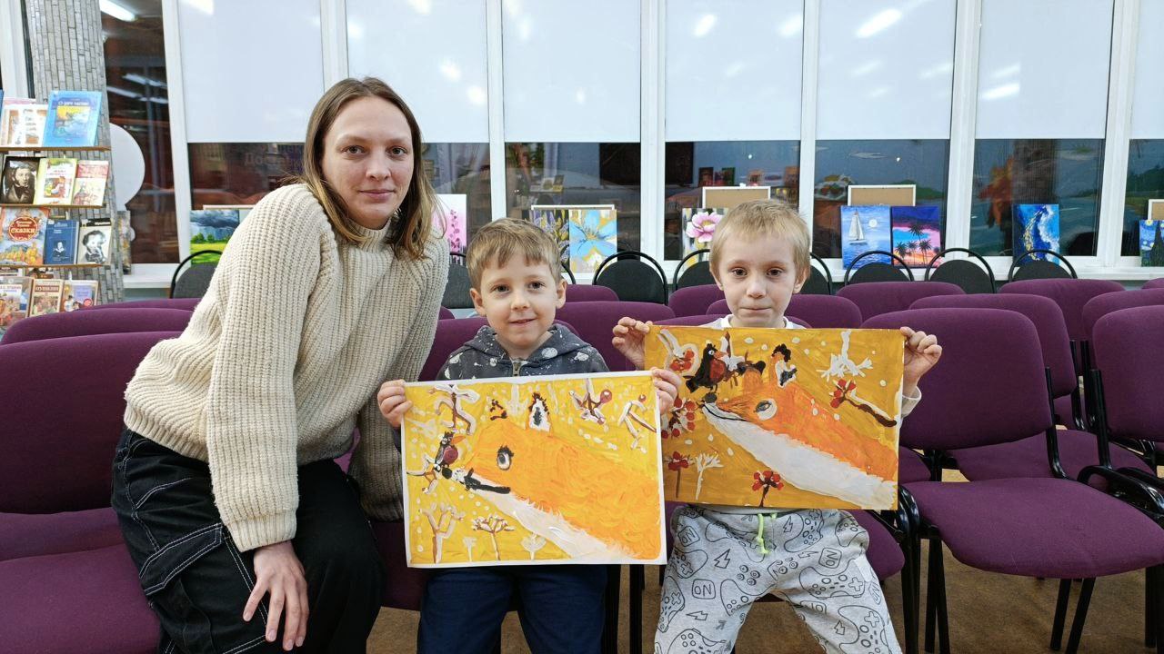 В библиотеке прошёл кружок рисования на тему "Птичка на лисичке". На белом листе постепенно появлялось очертание лисы с озорным носиком, на котором уютно устроилась птичка. Пальчики уверенно водили кисточкой, развивая ловкость и моторику. Когда заполнили весь лист цветом, взялись за детали: прорисовали мягкую шерстку лисички тонкими штрихами (это тренирует точность движений и воображение!), добавили изящные веточки рябины и сочные ягодки (помогает развивать цветовое чувство и фантазию!), а напоследок – падающий снег. Каждый штрих – шаг к уверенным ручкам, буйному воображению и любви к творчеству.