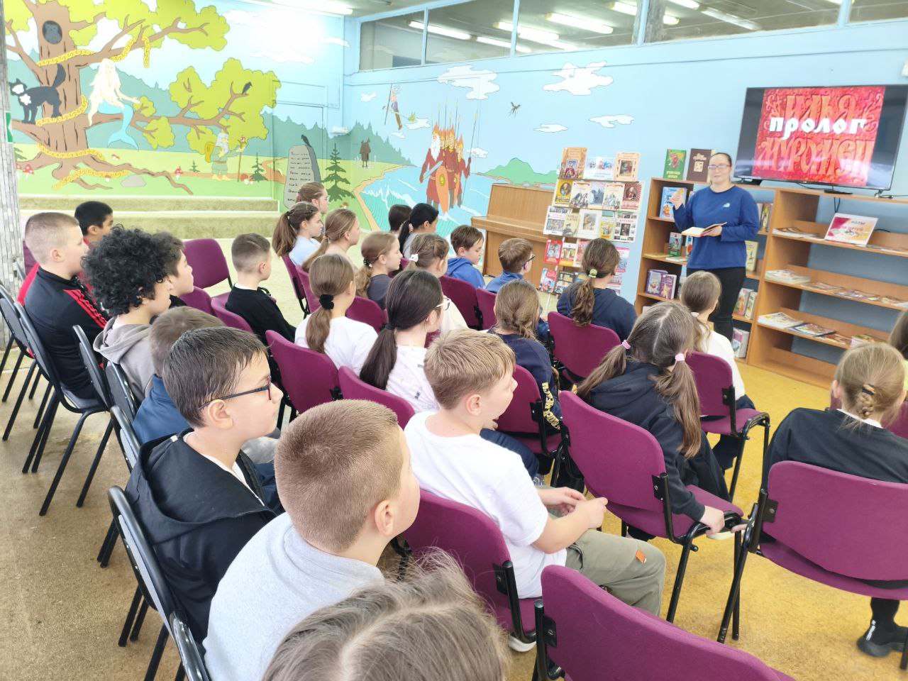 В рамках программно-проектной деятельности "Памяти павших будьте достойны!", призванной формировать патриотические ценности через обсуждение и обучение, в библиотеке состоялся "Литературный кинозал". Ученики 4 класса МБОУ СОШ № 1 посмотрели фильм "Илья Муромец". Эта картина, основанная на былинах о великом русском богатыре, позволила ребятам совершить увлекательное видеопутешествие в прошлое и узнать об удивительной жизни былинного героя. И сегодня, спустя тысячу лет, мы по-прежнему гордимся подвигами Ильи Муромца, Алёши Поповича и Добрыни Никитича. Сотрудник библиотеки напомнил школьникам о завете богатырей: "Защищать свою Родину, беречь её, любить свою землю, свой народ, свою страну".