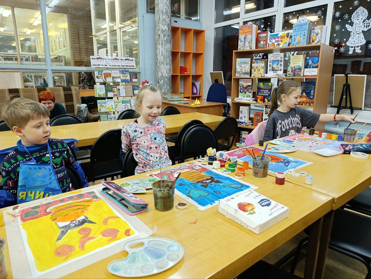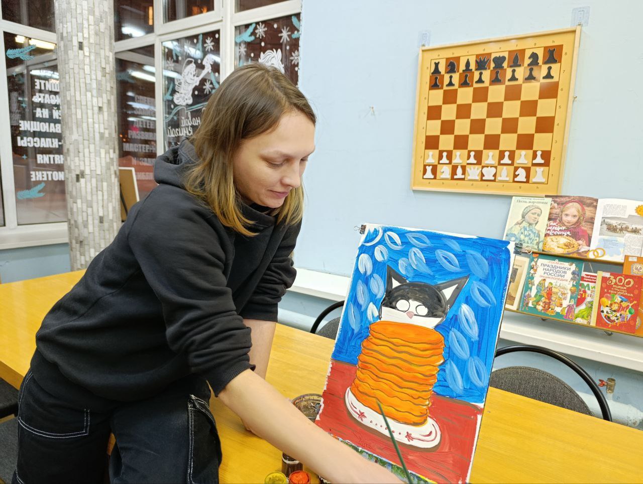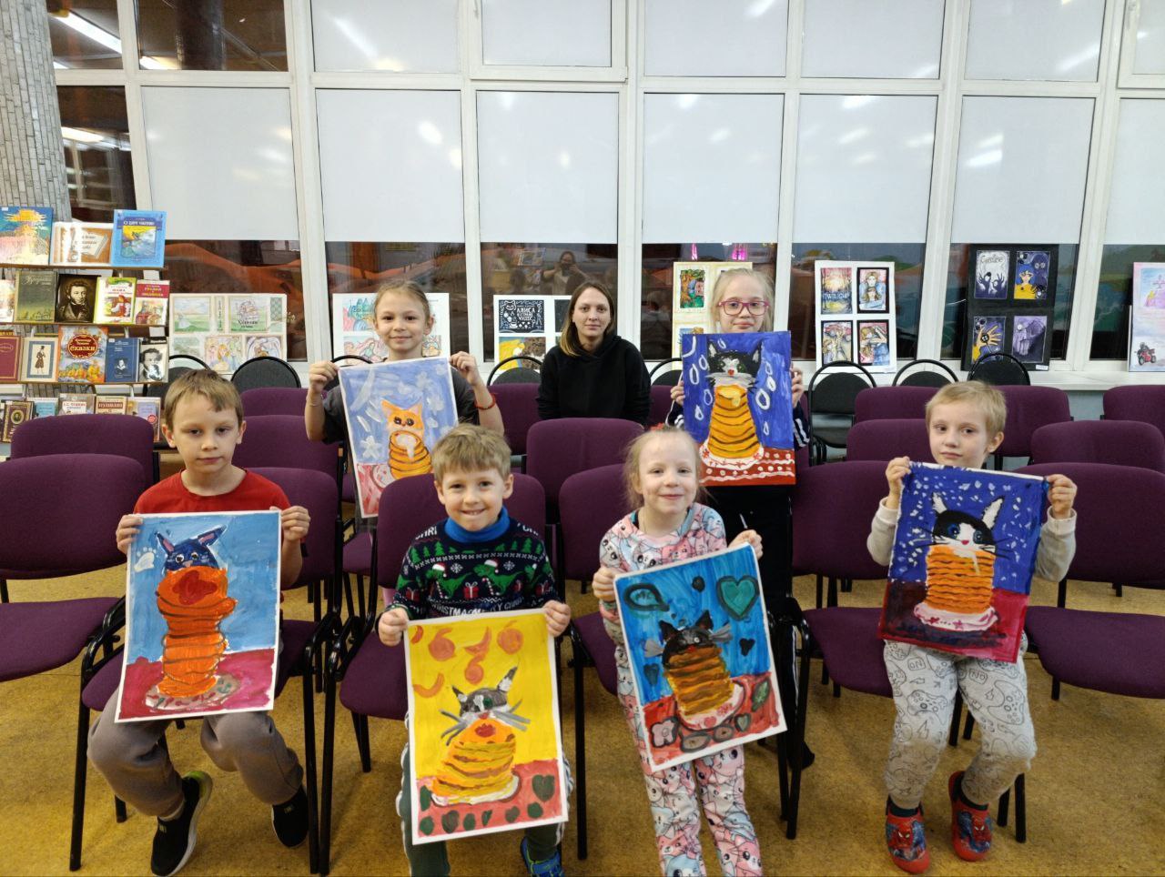 В библиотеке прошёл кружок рисования "Аппетитные блины с озорным котиком". Дети с восторгом взялись за кисти и гуашь, и начали рисовать стопку румяных блинов на тарелке, щедро политых вкусняшками. Кто-то добавил сочные ягодки для полного аппетита. За блинами хитро выглядывает озорной котик. Маленькие художники оживили картину деталями, пробовали новые техники смешивания красок и радовались своим творениям. Рисование развивает мелкую моторику и координацию, тренирует воображение и фантазию, учит цветам, текстурам и композиции, помогает выражать эмоции и расслабляться, повышает уверенность: "Я нарисовал это сам". Дорогие родители! Хотите, чтобы ваш ребёнок раскрыл талант художника и с радостью творил яркие картины? Приглашаем на увлекательные групповые занятия по рисованию!