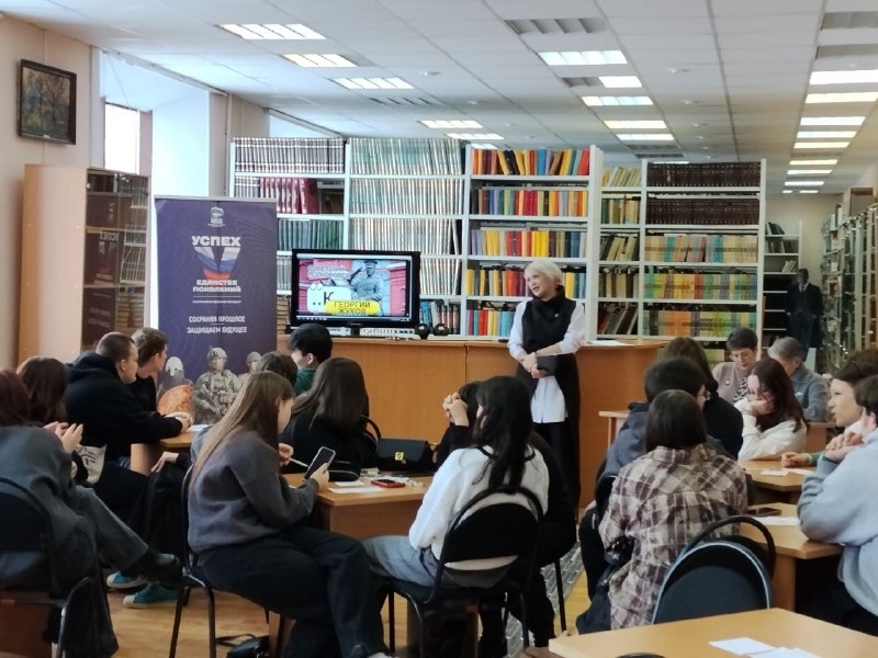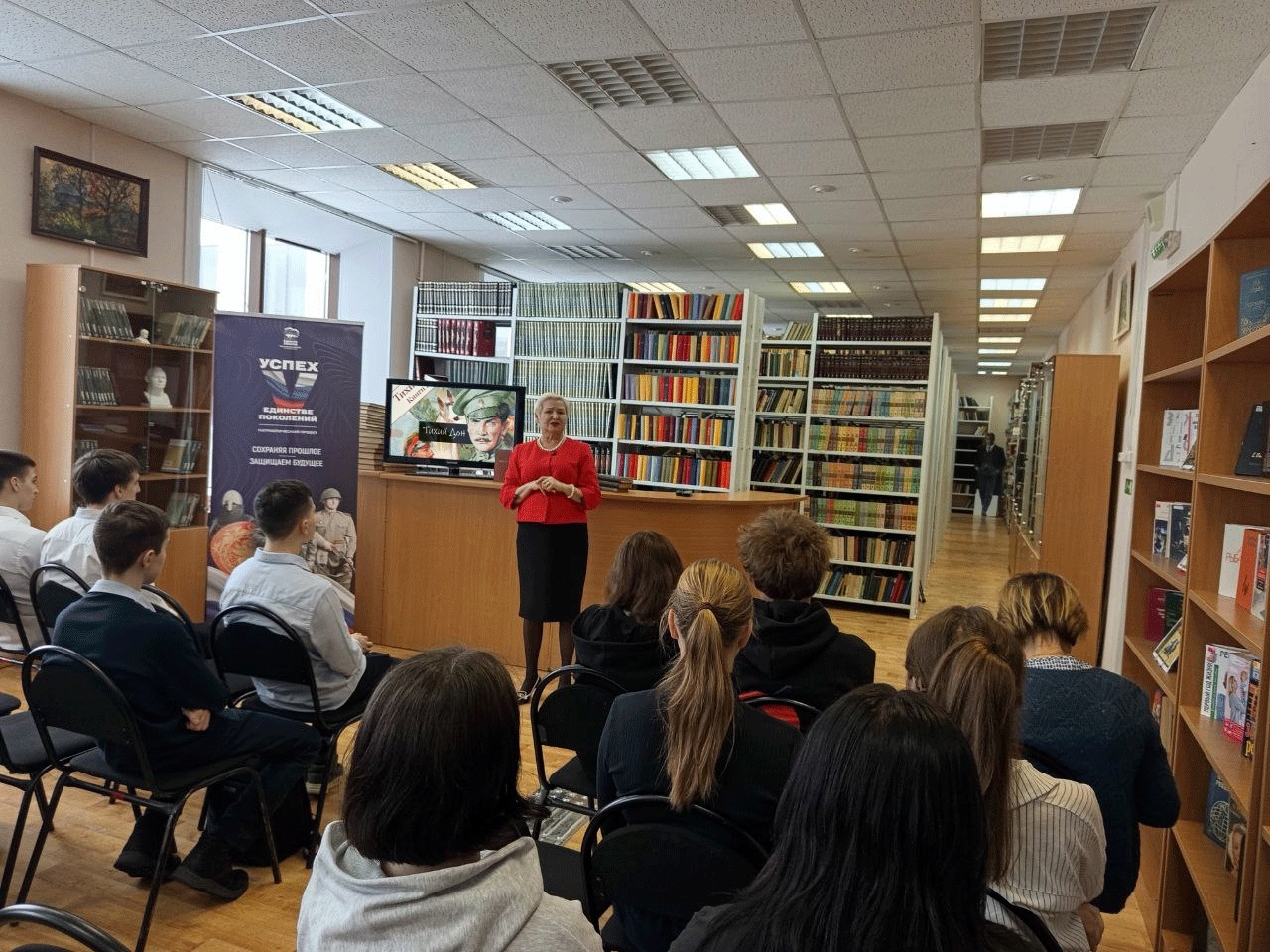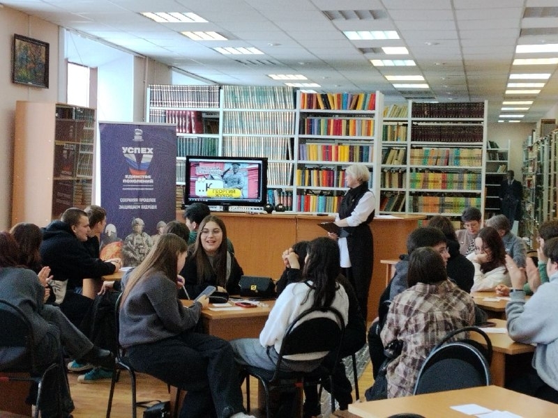 В библиотеке состоялся военно-патриотический квиз "Служить Отечеству!", в котором приняли участие ученики 7-го "Д" класса гимназии № 5. Викторина была посвящена истории российской армии и армейской жизни. Ребята продемонстрировали свои знания, умение работать в команде, смекалку и глубокую привязанность к Родине. Завершилось мероприятие минутой молчания в память о погибших военнослужащих из нашего города, проявивших героизм в специальной военной операции.
