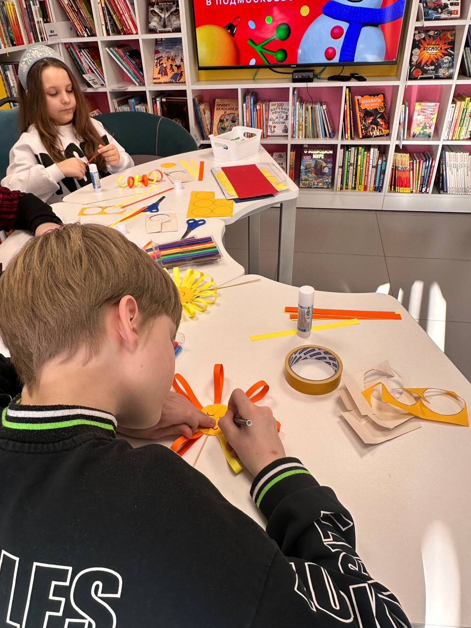В библиотеке в рамках творческой мастерской "Оч.умелые ручки" прошёл мастер-класс, посвящённый Масленичной неделе. Сотрудники библиотеки пошагово продемонстрировали, как оформить обложку праздничной открытки и её внутреннюю часть. Дети с удовольствием окунулись в творческую атмосферу и каждый сделал своё солнышко-блин.