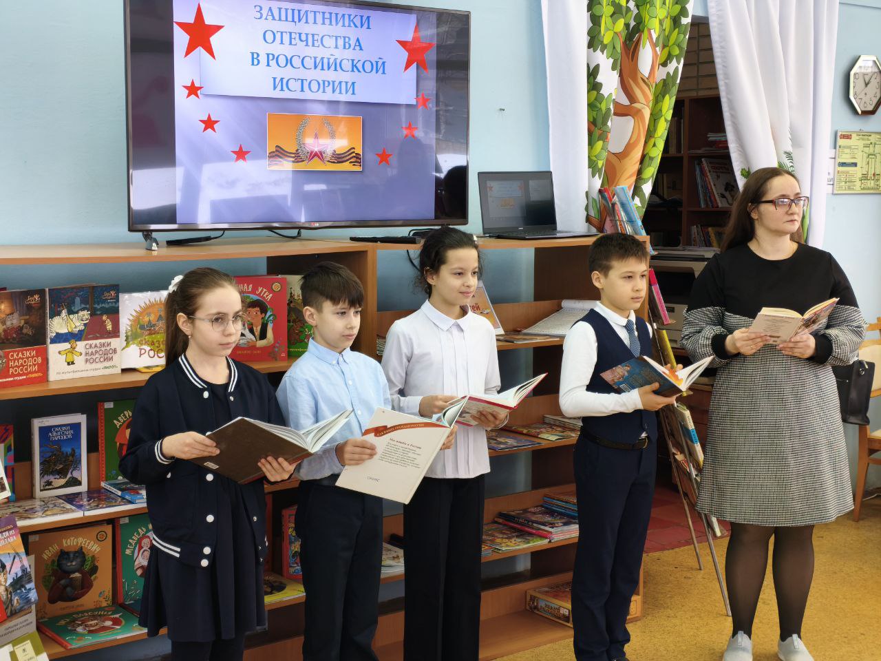 Ко Дню защитника Отечества в рамках областной акции "Защитники: от книги к делу" в библиотеке для учащихся 4 Г класса МБОУ СОШ № 1 прошли громкие чтения "Не ради славы и наград...".