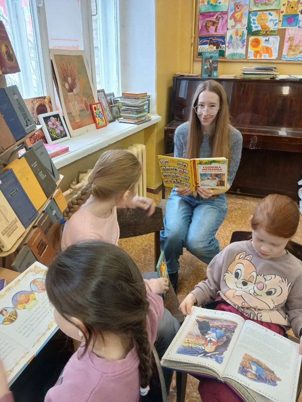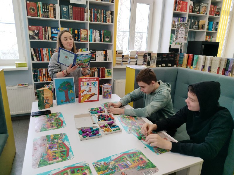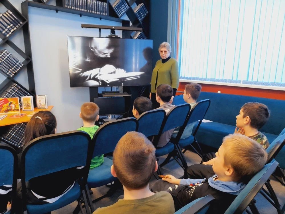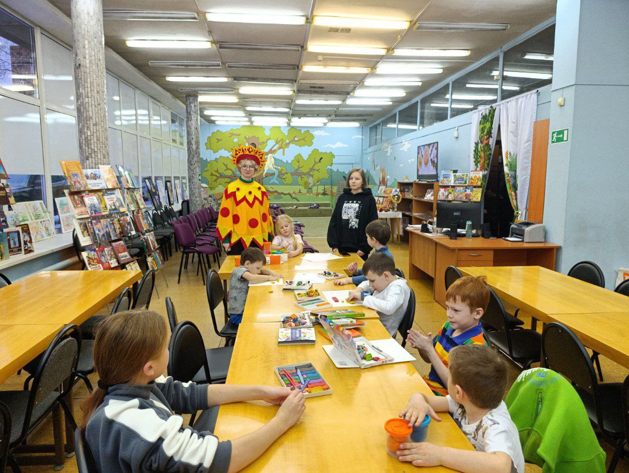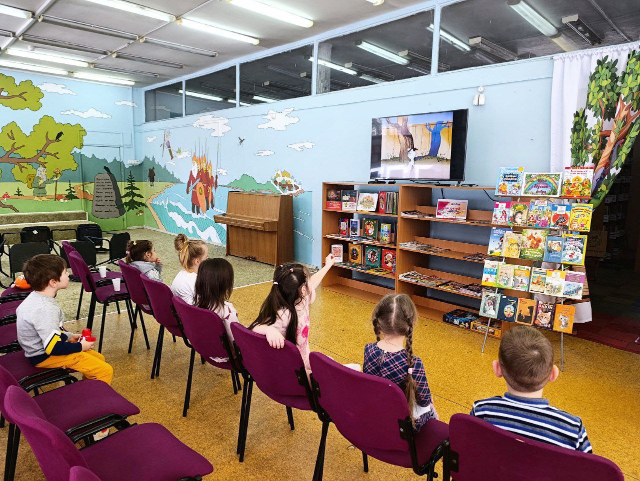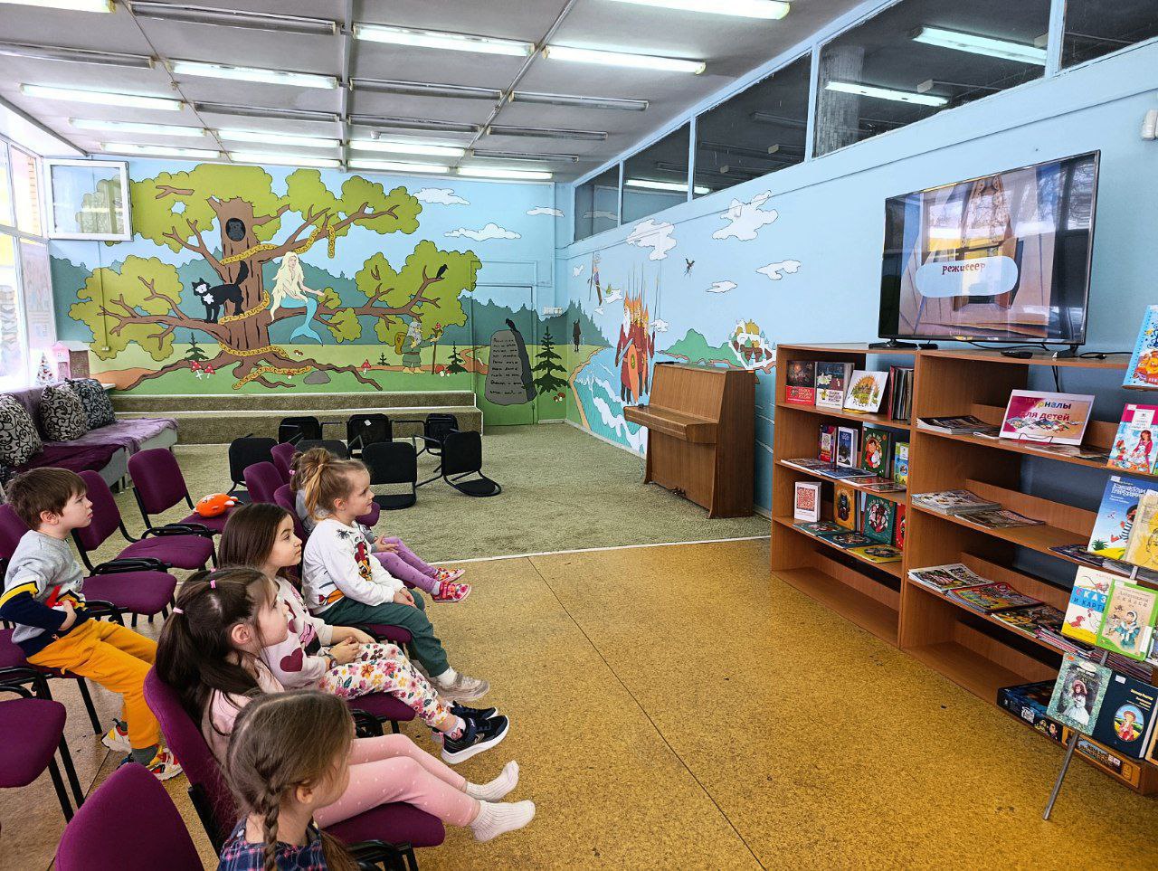 В библиотеке для юных зрителей прошёл мультпоказ "Весёлая карусель". Сотрудник библиотеки рассказал ребятам, что в 2026 году киностудия "Союзмультфильм" отмечает 90-летие, оставаясь старейшим и крупнейшим производителем анимации в России. Затем читатели рассказали о своих любимых сказках и историях, посмотрели мультфильмы "Кот?нок по имени Гав", "Кошкин дом" и "Умка".