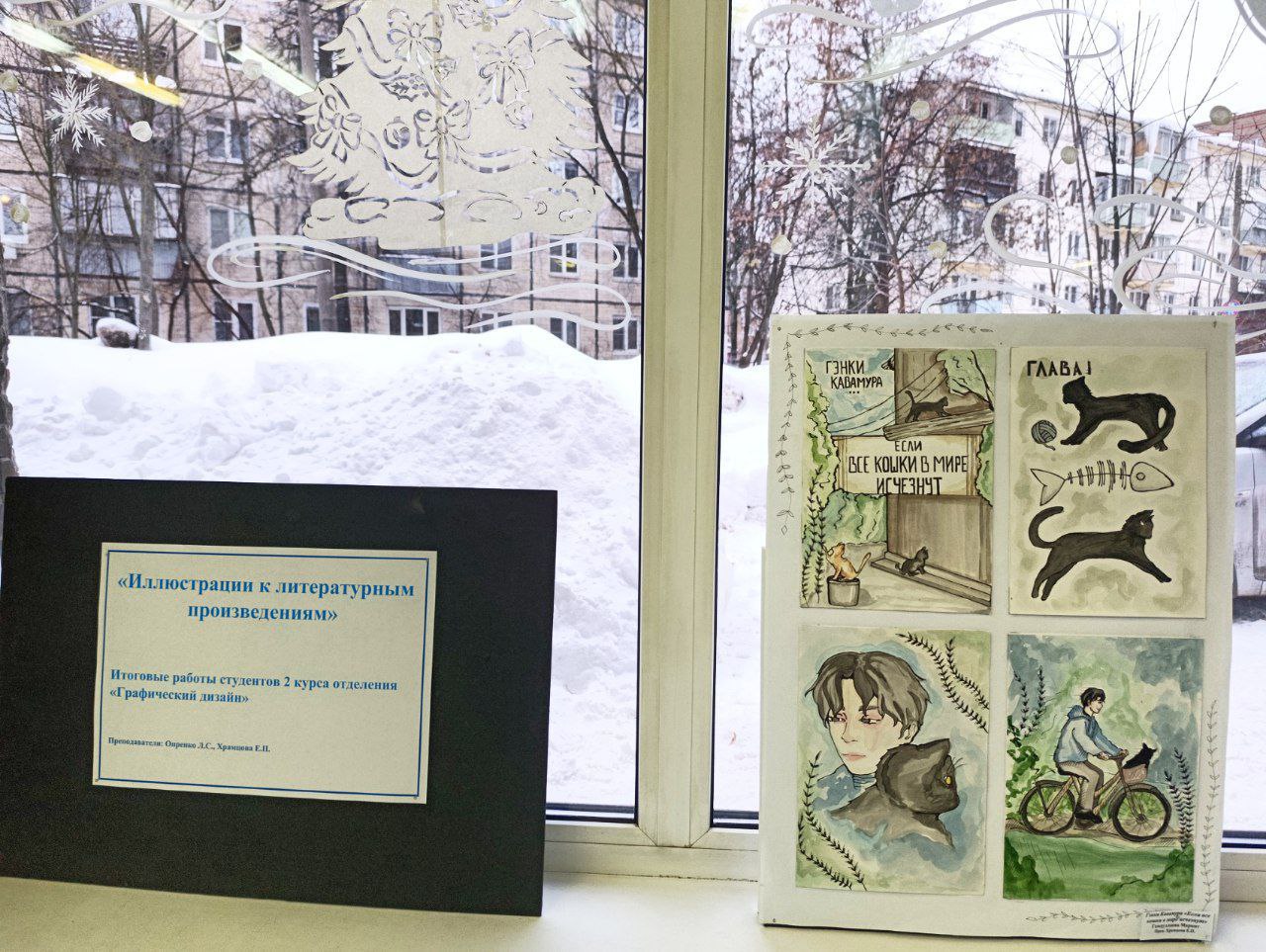 В библиотеке открылась выставка творческих работ студентов 2 курса Техникума технологий и дизайна, отделения "Графический дизайн". На выставке представлены иллюстрации к литературным произведениям, в которых авторы показали своё видение событий и героев любимых книг.