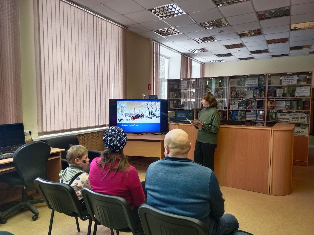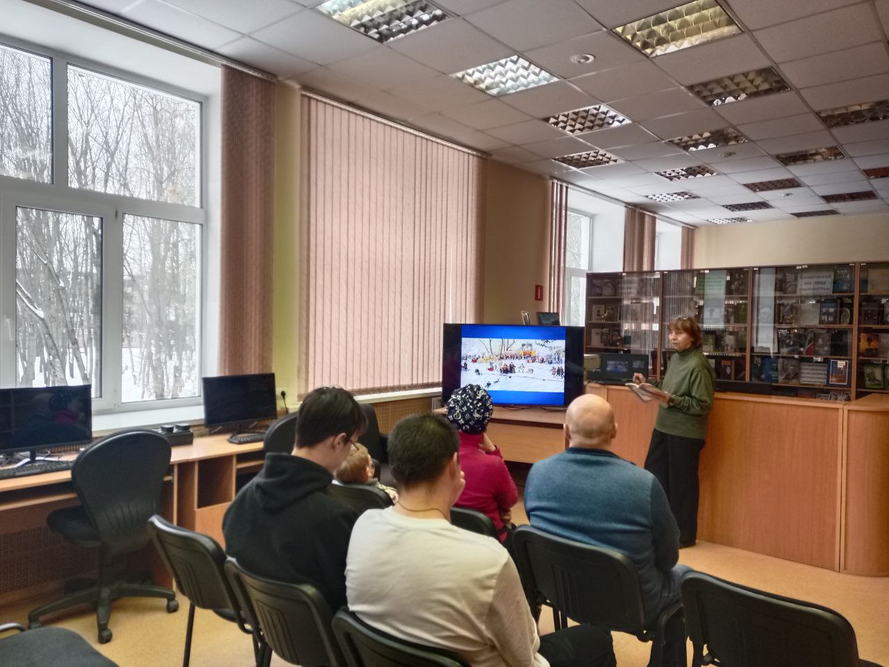 В библиотеке на занятии творческой мастерской "Бумажная академия" была проведена викторина "Масленица – блинница, весны именинница", на которой посетители познакомились с историей Масленицы – русского народного праздника. Слушателям загадали загадки о зиме и весне, о солнце и блинах, рассказали о традиции проводов зимы с весёлыми забавами, ярмарками, катанием на санях, объяснили названия дней масленичной недели. Участники увидели репродукции картин Б. Кустодиева, изображавшего масленичные гулянья, В. Серова – взятие снежного городка.