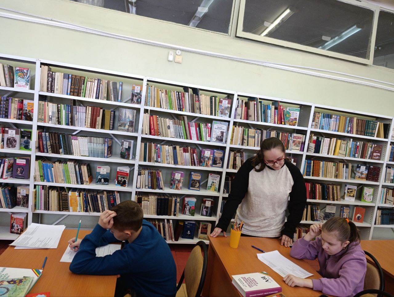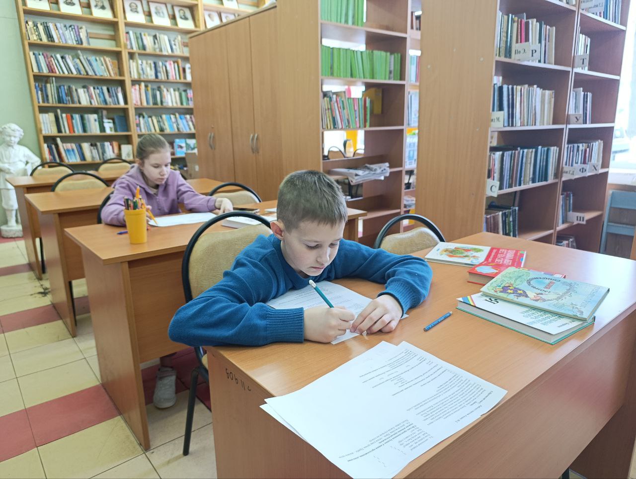 В библиотеке в рамках мастер-класса "Отличник" школьники выполняли комплексные работы по русскому языку.