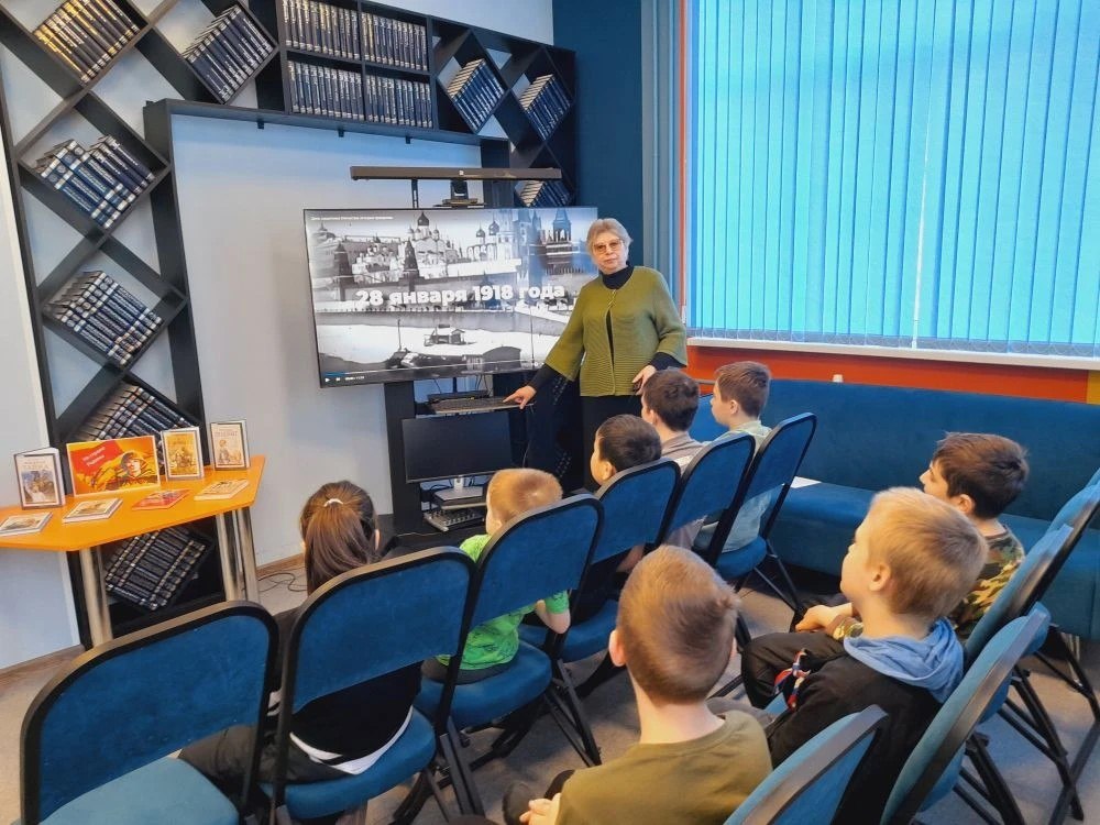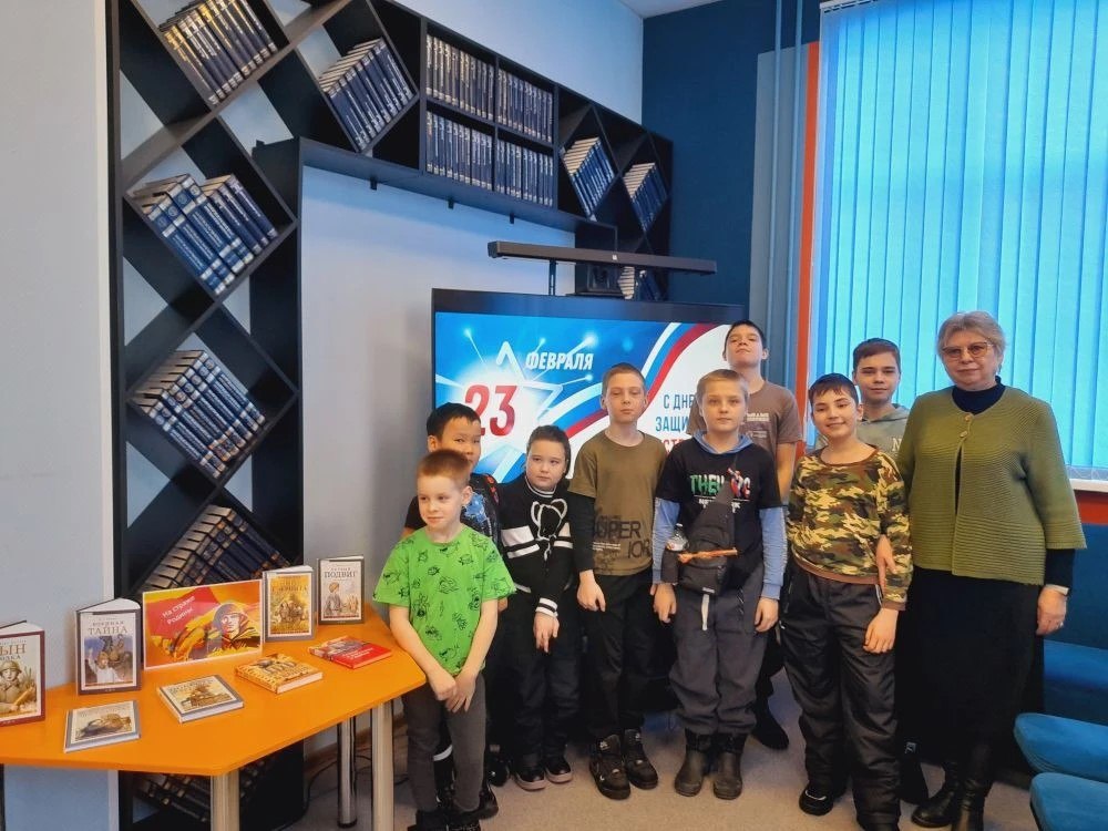 Сотрудник библиотеки рассказал о Дне защитника Отечества. Участники мероприятия вспомнили героев России разных эпох, которых объединяло одно – великая любовь к своей родине. Мероприятие было посвящено тем людям, чьи сила духа, честь, доблесть стали примером проявления наивысших нравственных человеческих качеств и ответственности перед Отечеством. Школьники познакомились с произведениями Ю. Яковлева, Л. Кассиля, С. Алексеева, прочитали стихотворения В. Степанова "23 февраля" и "Суворовец" из книги "Мы живём в России", подготовили выразительное чтение стихотворений, посвящённых празднику.