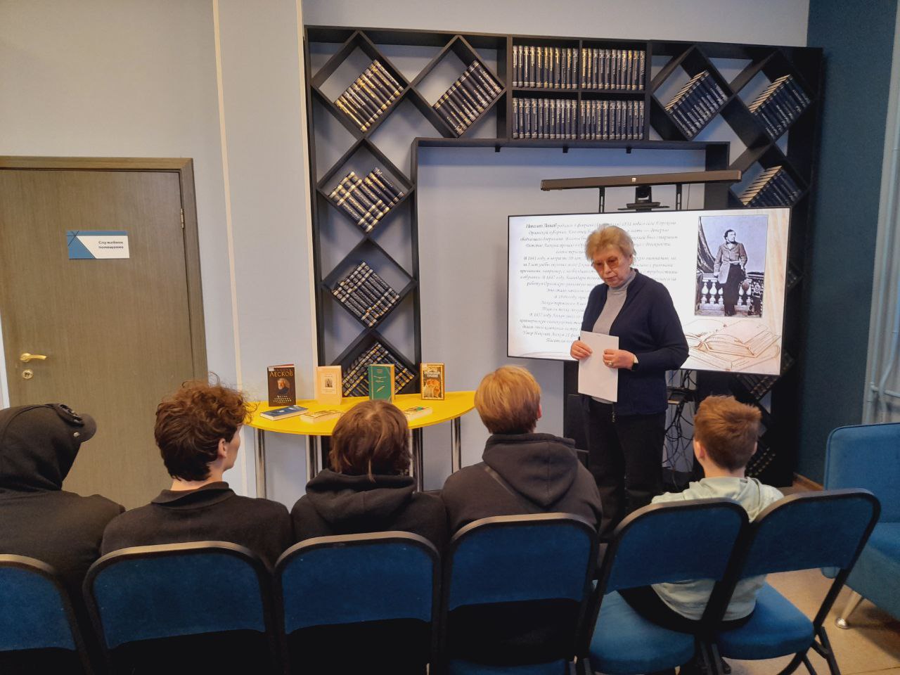 В библиотеке к 195-летию со дня рождения Николая Семеновича Лескова прошла встреча любителей "Подросткового клуба "К.О.Т" (Книги. Общение. Тусовка) на тему "Николай Лесков: чародей слова". Сотрудник библиотеки рассказала о творчестве одного из самых самобытных русских писателей XIX века, познакомила с основными вехами жизни и творчества писателя, рассказала о своеобразии его художественного стиля и языке произведений. Далее ребята смогли познакомиться с яркими характерами лесковских героев: Левшой – символом русского мастерства, Очарованным странником – воплощением русской души, героями произведений "Леди Макбет Мценского уезда". В завершение мероприятия ребятам предложили выразительное чтение отрывков из произведений.