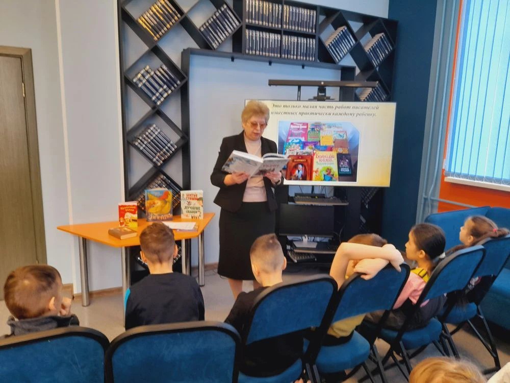 В библиотеке для юных зрителей прошёл мультпоказ "Весёлая карусель". Сотрудник библиотеки рассказал ребятам, что в 2026 году киностудия "Союзмультфильм" отмечает 90-летие, оставаясь старейшим и крупнейшим производителем анимации в России. Затем читатели рассказали о своих любимых сказках и историях, посмотрели мультфильмы "Кот?нок по имени Гав", "Кошкин дом" и "Умка".