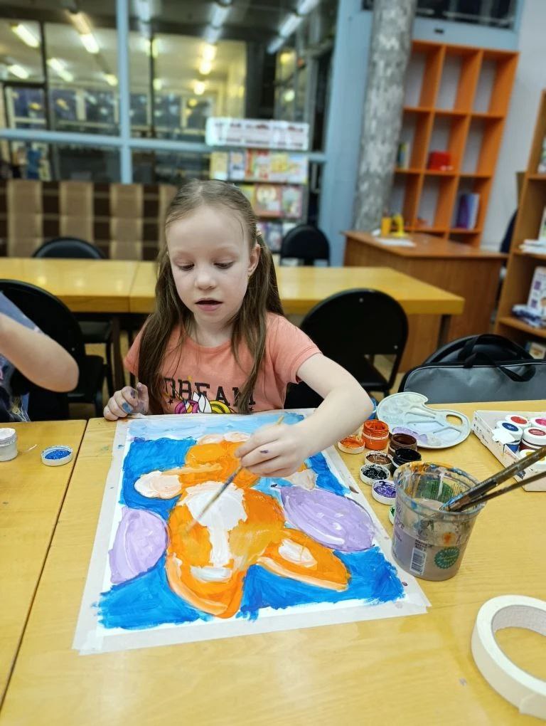 В библиотеке мы окунулись в мир творчества и ярких красок! Создавали удивительные картины, используя цветную бумагу, гуашь и фломастеры. Каждый ребёнок смог проявить свою фантазию и воображение. В результате – яркие и неповторимые работы, которыми гордятся наши маленькие авторы!