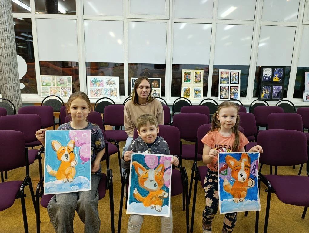 В библиотеке прошёл кружок по рисованию "Корги с шариками для самых любимых". Наши маленькие художники 5 лет отправились в удивительное приключение гуаши. В руках у пушистого корги – шарики, и на одном сияет цифра 8, как волшебный символ 8 Марта. Это не просто рисунок – это нежная открытка-плакат, полная любви для наших любимых мам и бабушек. С огромным старанием ребятки макали кисточки в гуашь, тщательно подбирая цвета для волшебного фона и летающих шариков. Родились настоящие маленькие шедевры! А знаете, какая польза в рисовании? Оно развивает воображение, учит терпению и концентрации, помогает выражать самые сокровенные чувства. Рисуя для близких, дети учатся заботе и благодарности – и это бесценный подарок для души. Посмотрите, какие работы у нас получились!