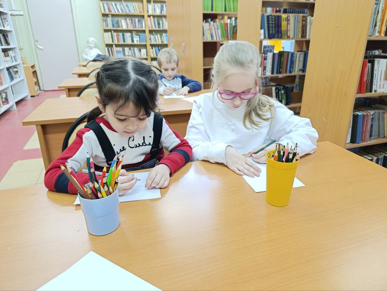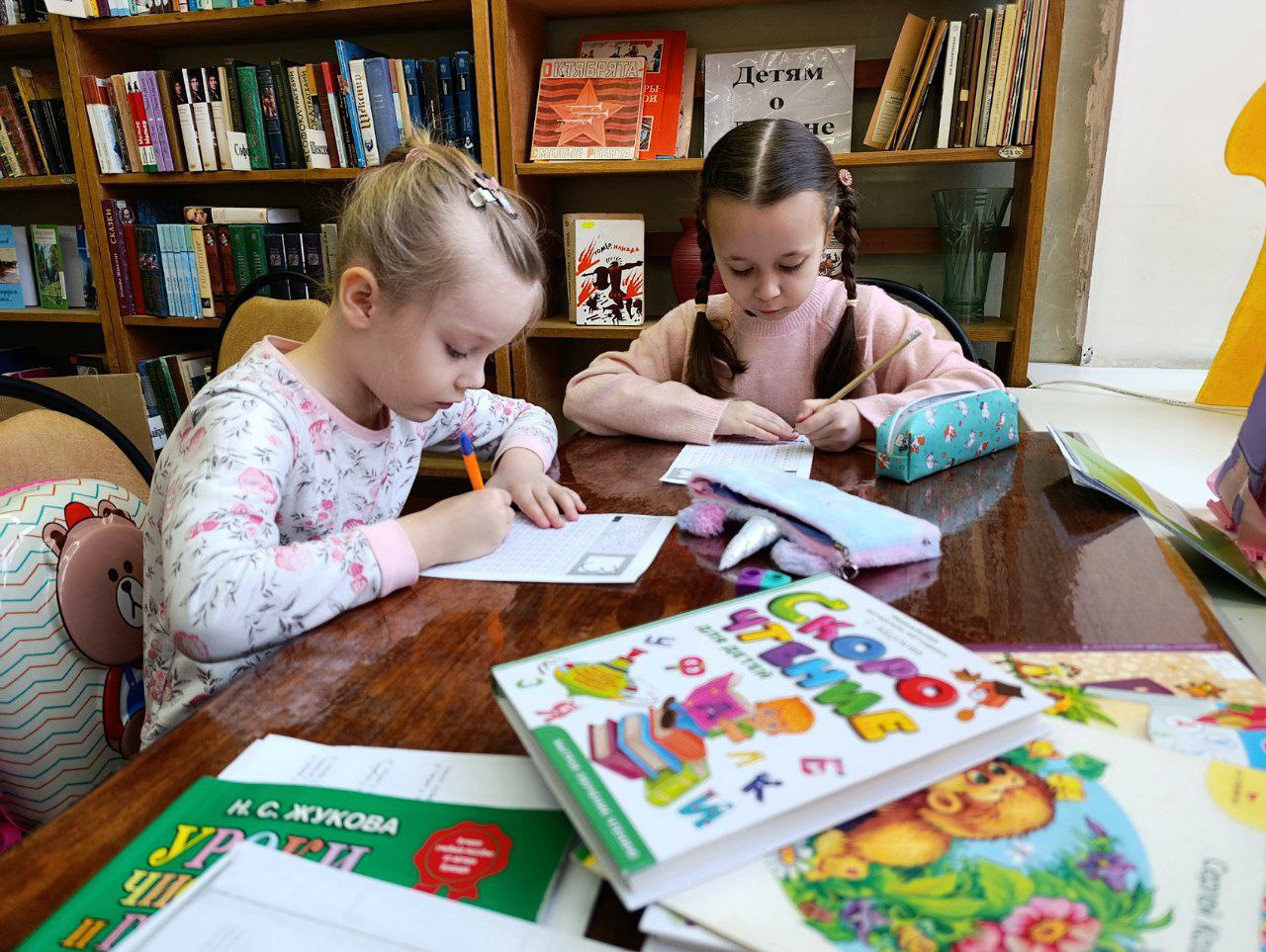 В библиотеке в рамках мастер-класса "Отличник" дошкольники готовили руку к письму, повторяли звуки русского языка, играли в фонетическую игру.