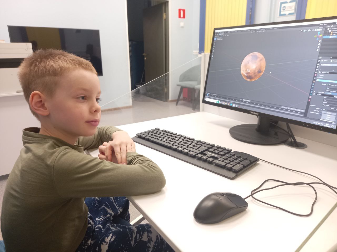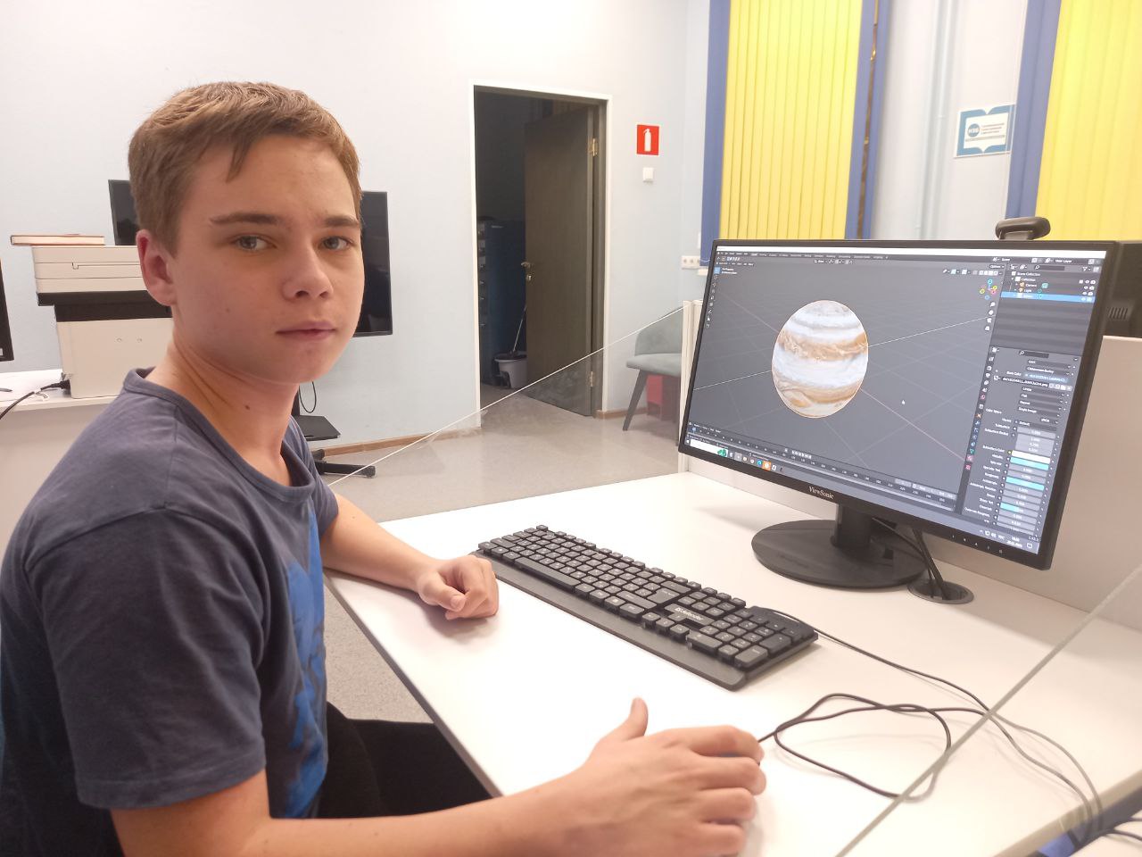 В библиотеке прошло занятие курса по изучению редактора трёхмерной графики Blender "Войти в IT". В продолжении курса "Космическое путешествие "Меж звёзд и галактик" сотрудник познакомил ребят с азами наложения текстур.