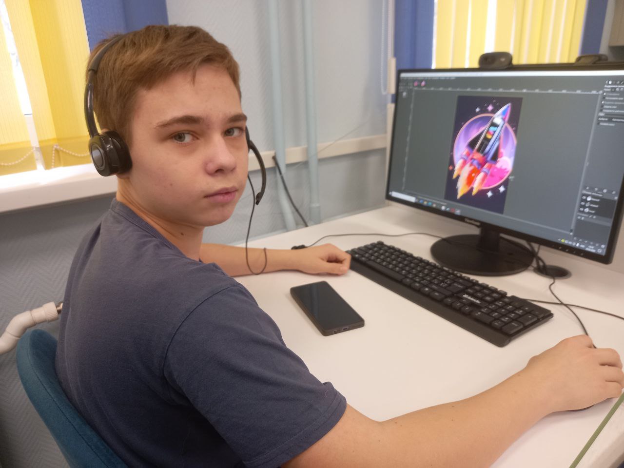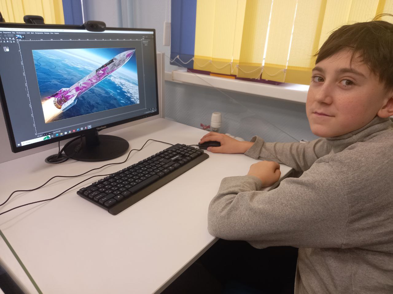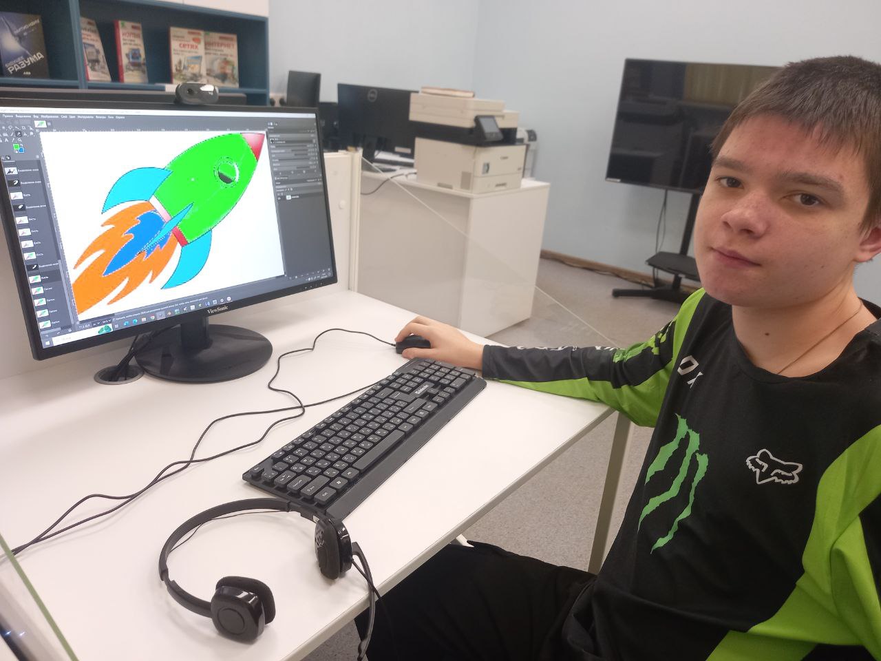 В библиотеке в рамках практического курса по графическому редактору GIMP "Gimpики" в продолжении курса "Космическое путешествие "Меж звёзд и галактик" ребята редактировали изображения ракет, изучая инструмент "Волшебная палочка" и различные режимы кисти.