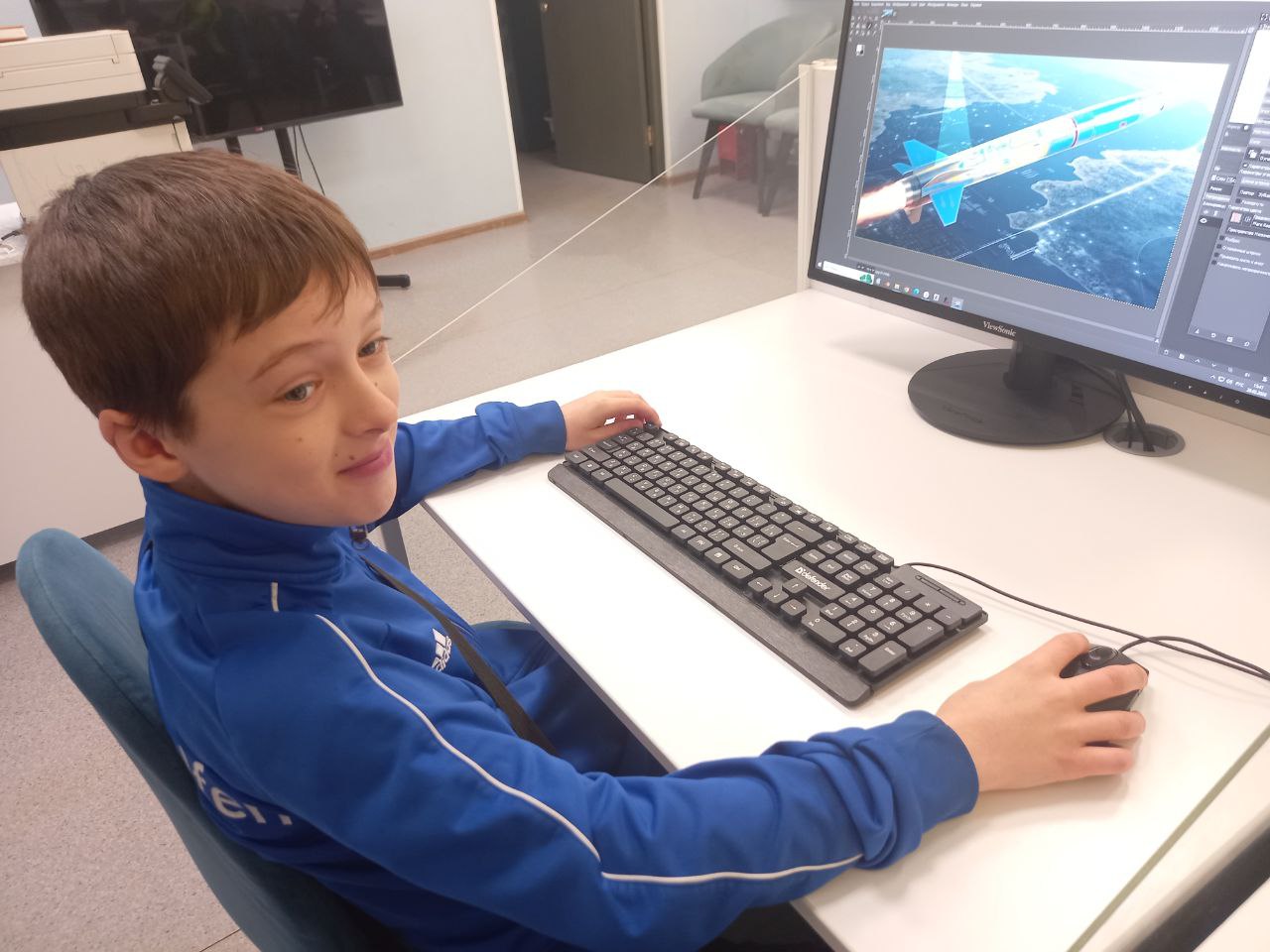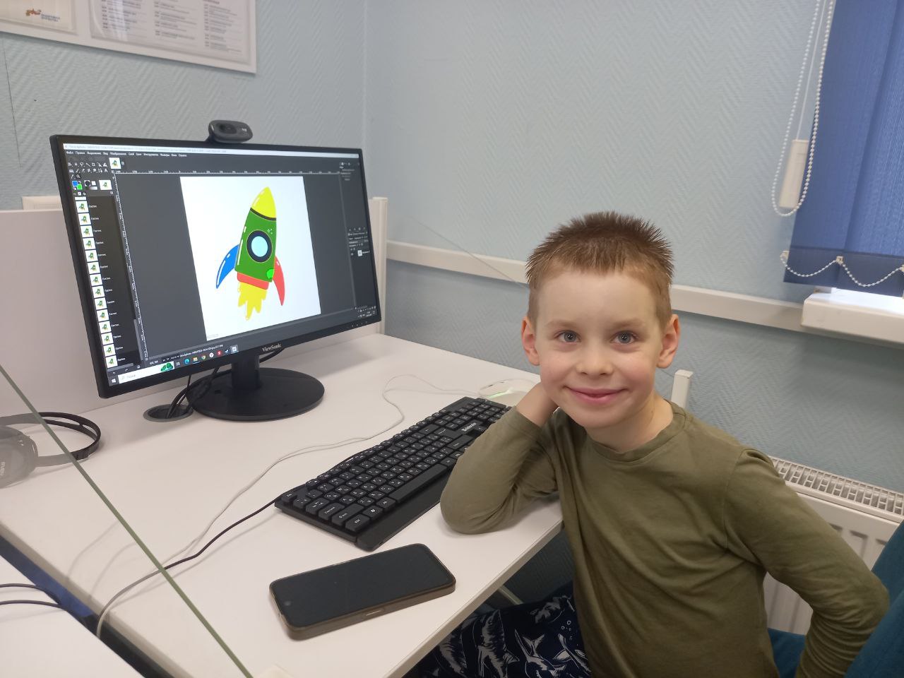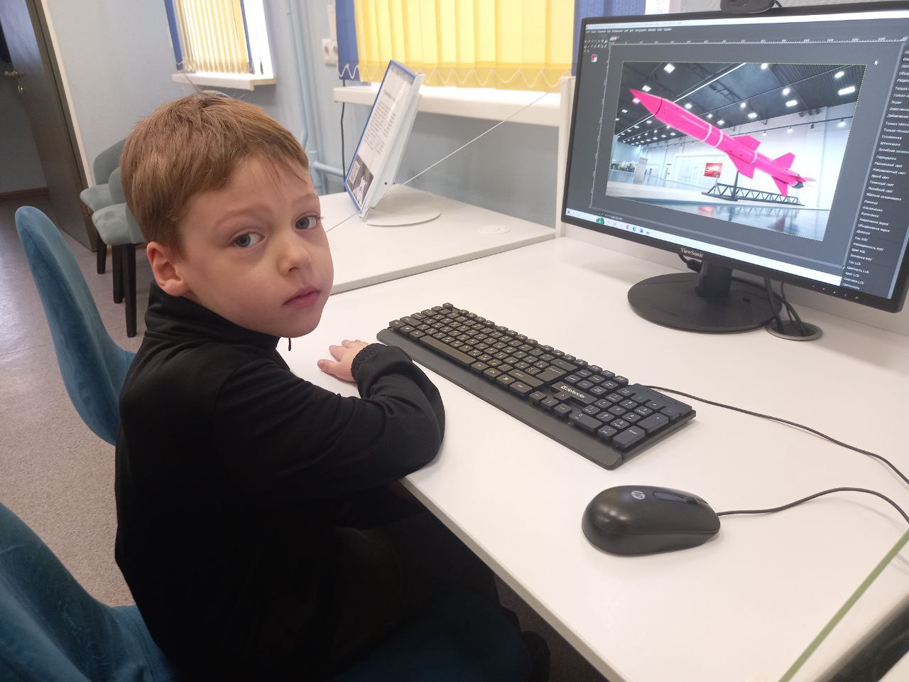 В библиотеке в рамках практического курса по графическому редактору GIMP "Gimpики" в продолжении курса "Космическое путешествие "Меж звёзд и галактик" ребята редактировали изображения ракет, изучая инструмент "Волшебная палочка" и различные режимы кисти.