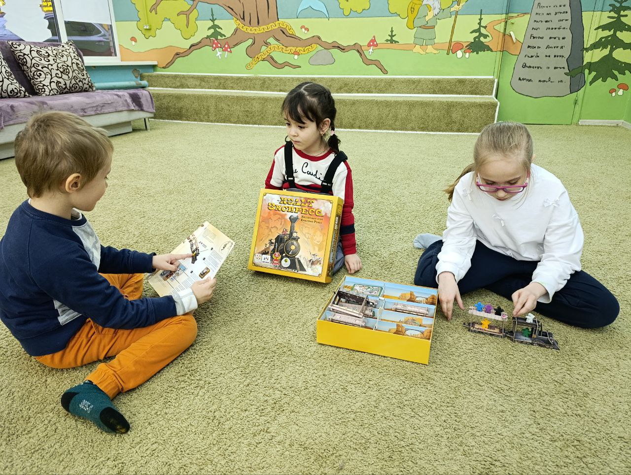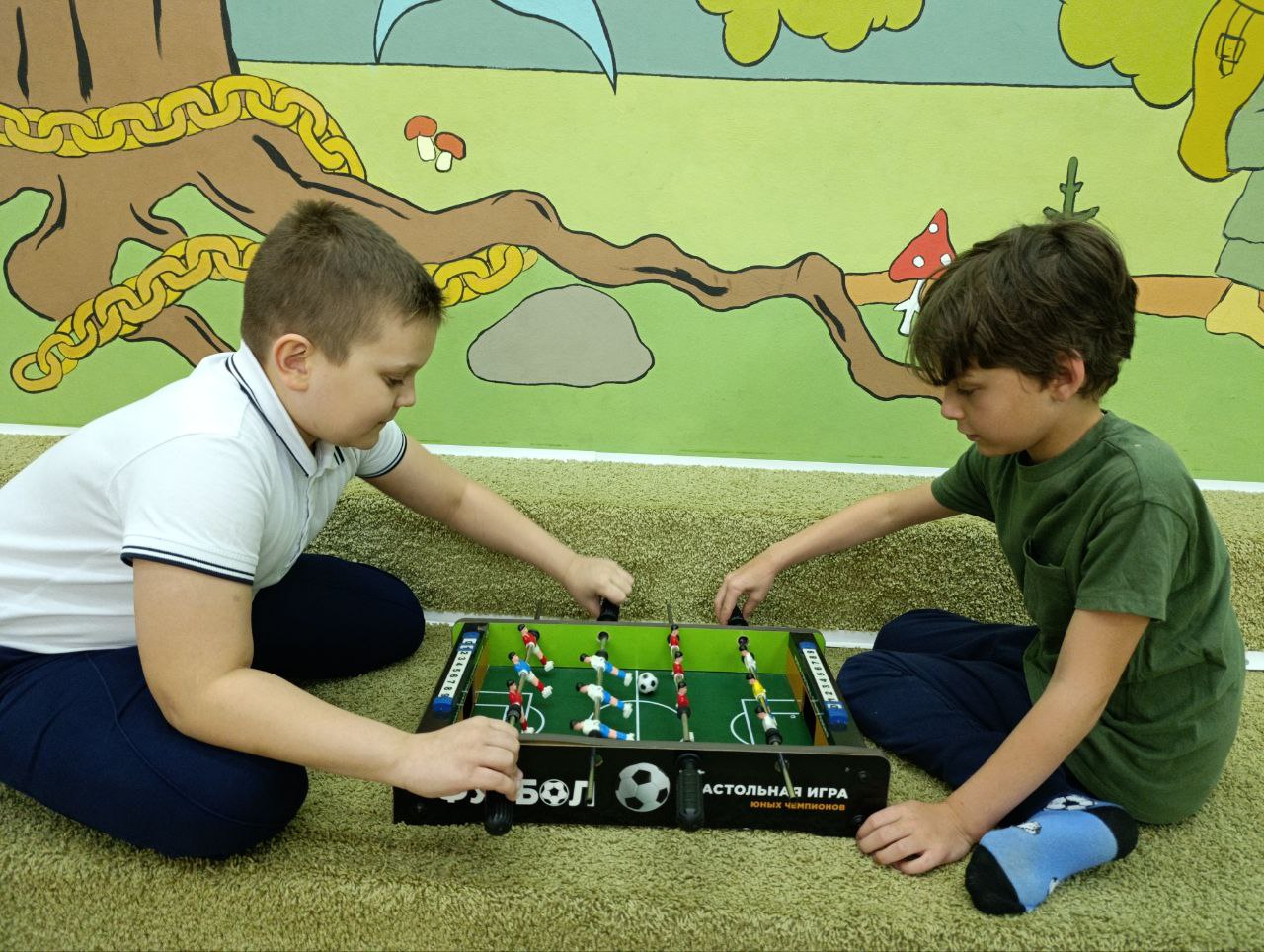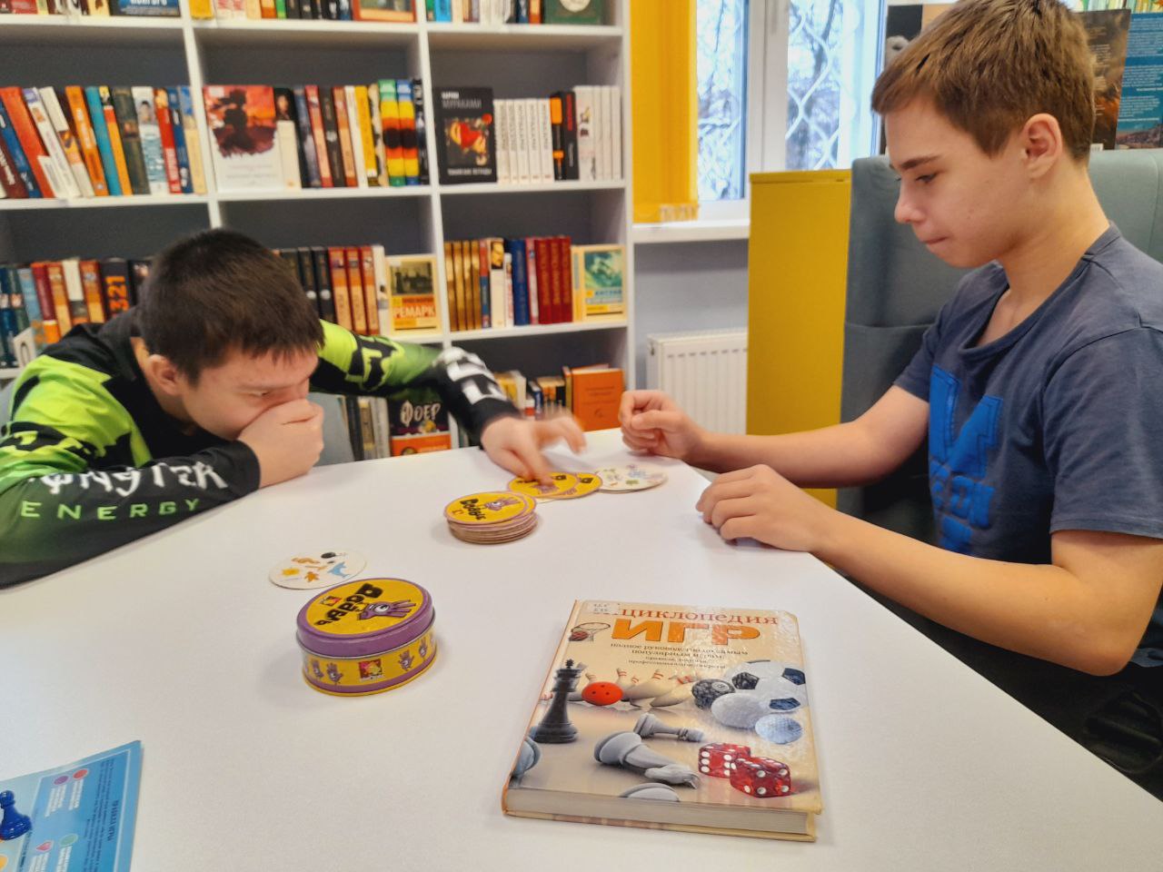 В библиотеке ребята проводили время за игрой. Каждый нашёл себе занятие по душе: настольная игра "Кольт-экспресс", "Футбол", рисование.