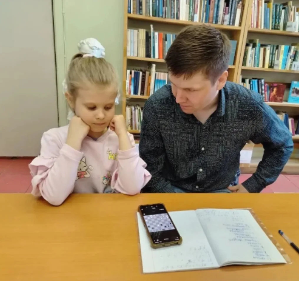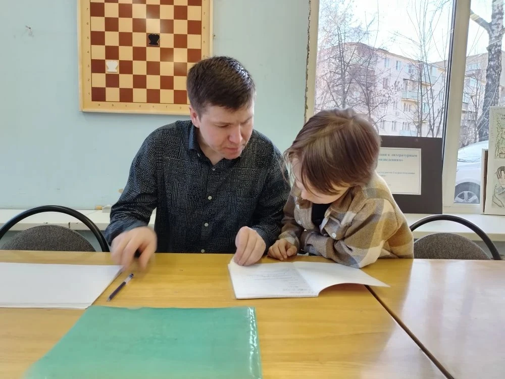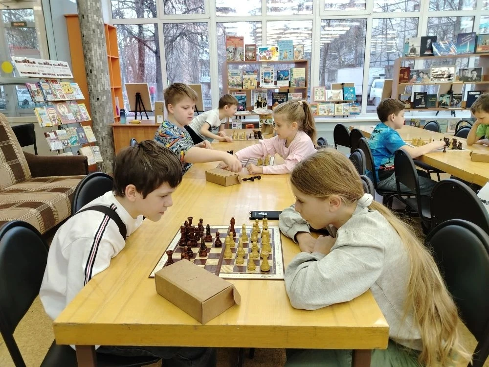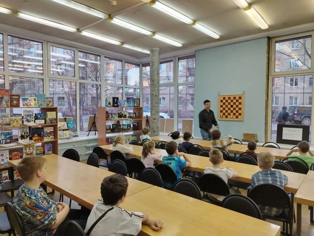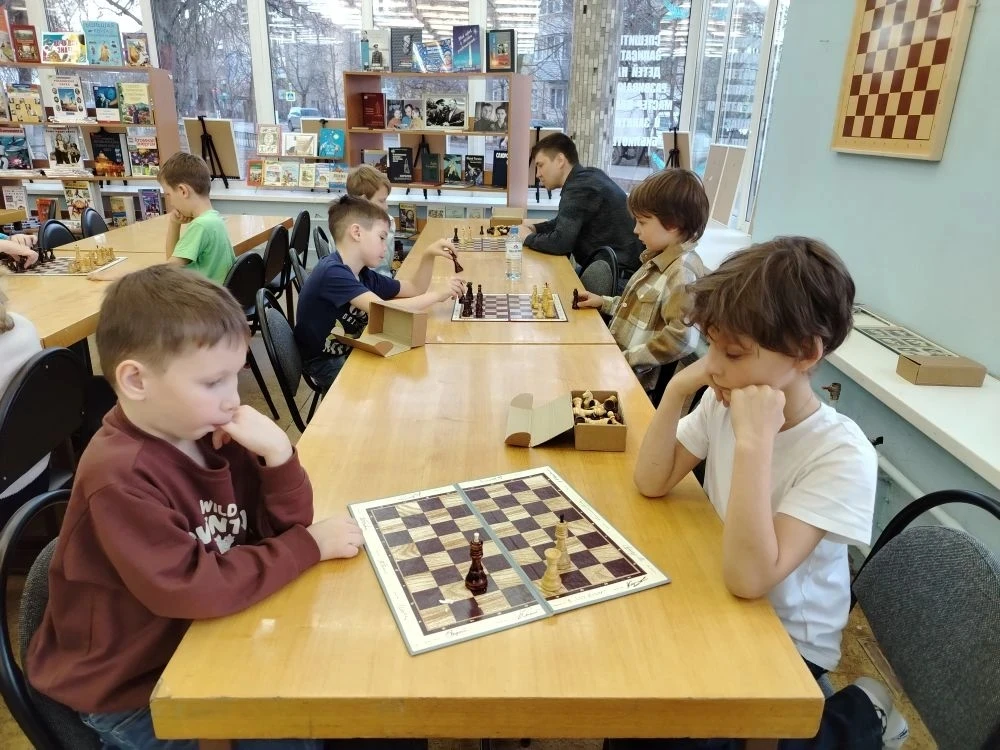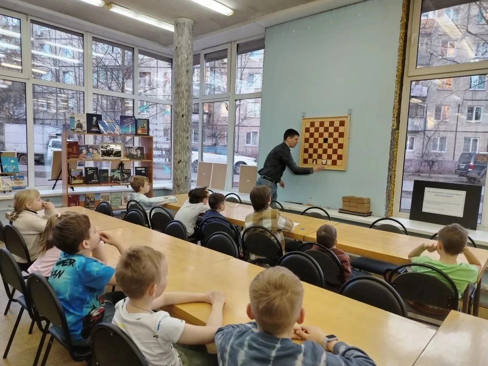 В библиотеке прошло очередное теоретическое занятие клуба любителей шахмат "Белая ладья". На этом занятии юные шахматисты тренировались, как ставится мат ладьей и королем в конце партии. После теоретической части ребята сыграли несколько шахматных партий друг с другом и отдали на проверку свои тетрадки с выполненным домашним заданием.
