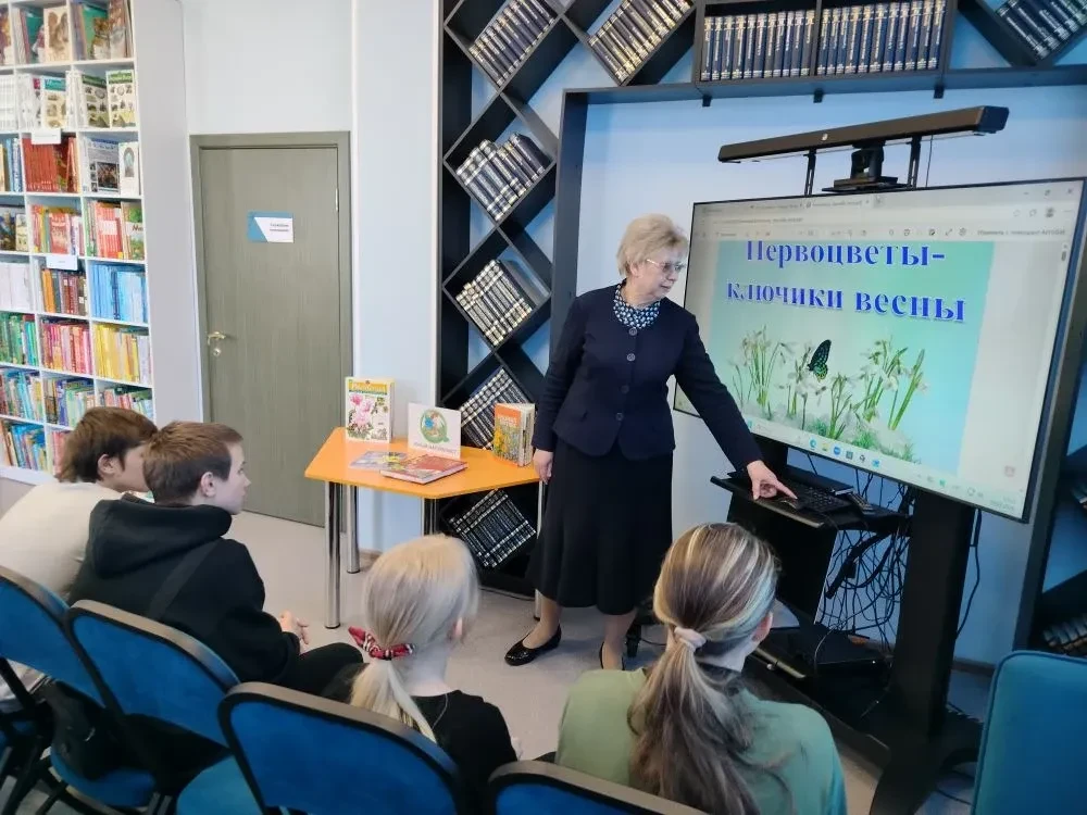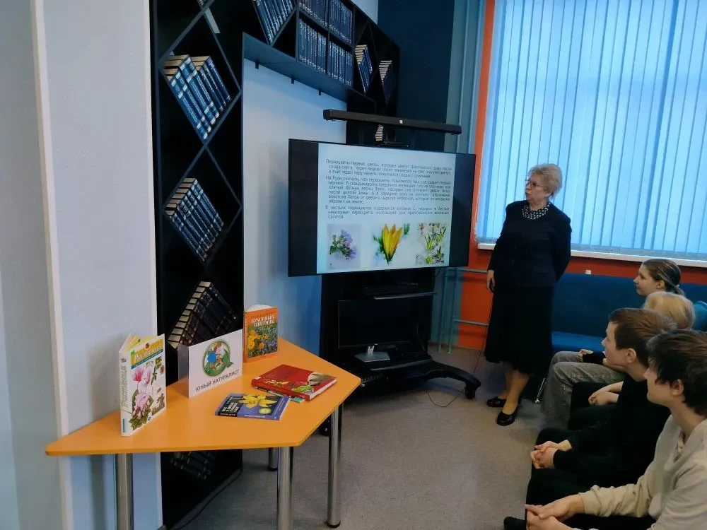В библиотеке в рамках клуба любителей природы "Юный натуралист" с целью привлечения внимания к проблеме первоцветов, пропаганды бережного отношения к раннецветущим растениям сотрудник библиотеки с помощью презентации провела экологический час на тему "Первоцветы".  Для многих весна – любимое время года. В это время среди снега и проталин расцветают первоцветы – самые первые цветы, хрупкие и стойкие создания. Весна всех приглашает в гости, но ходят к ней по-разному: одни собирают цветы в большие букеты, другие выкапывают одно – два растения и берут их с собой, не думая о том, что цветов остается все меньше и меньше, и может наступить время, когда они совсем исчезнут. Далее ребята отгадывали загадки, читали стихи, выяснили, какие растения находятся под угрозой исчезновения и относятся к видам, занесённым в Красную книгу (прострел раскрытый или сон-трава, пион тонколистный или воронец, горицвет весенний или адонис весенний, лапчатка белая, ветреница лесная и др.)