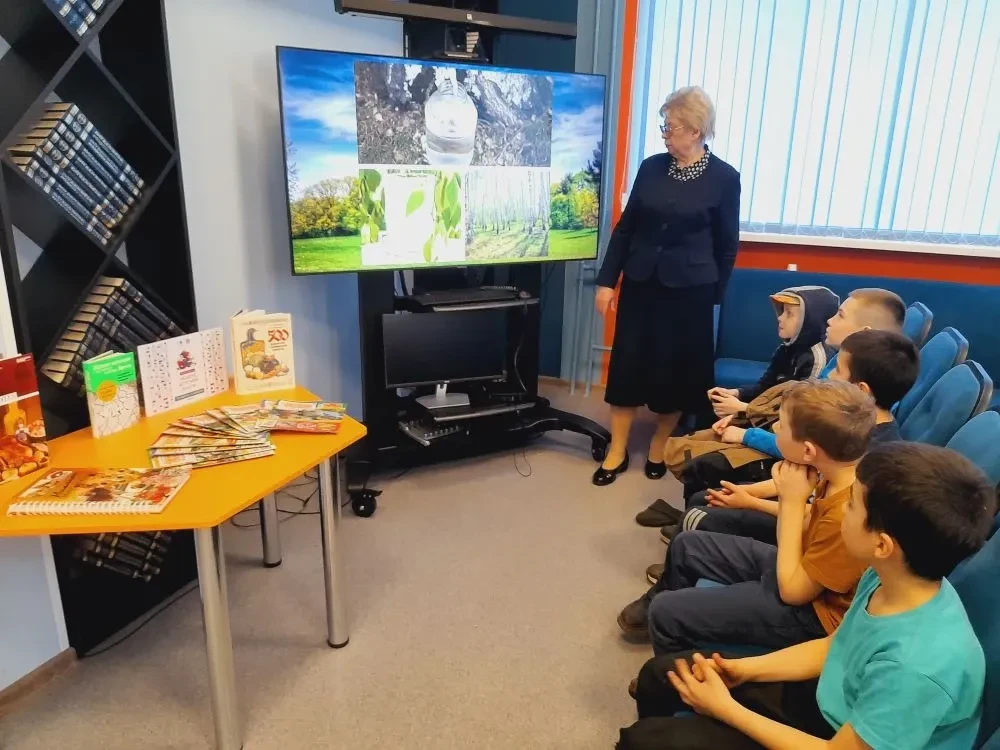 В библиотеке в рамках клуба любителей здорового питания "Вкусные истории" прошло занятие на тему "Берёзовый сок – весенний эликсир". Берёзовый сок – целая кладезь витаминов и минералов, которая содержит соли магния, калия, кальция, кремния, натрия, меди, алюминия, фосфора, цинка, циркония. Библиотекарь рассказала о том, что березовый сок необходимо пить, чтобы укрепить иммунитет и восстановить силы организма, особенно это целесообразно после зимы, когда иммунитет понижен, кроме того, он помогает справиться с весенней депрессией и усталостью, повышает гемоглобин. Из представленной презентации ребята узнали, что берёза за зиму запасает полезные вещества, которые весной попадают в сок и его можно пить как в свежем виде, так и приготовить из него различные напитки, например квас.
