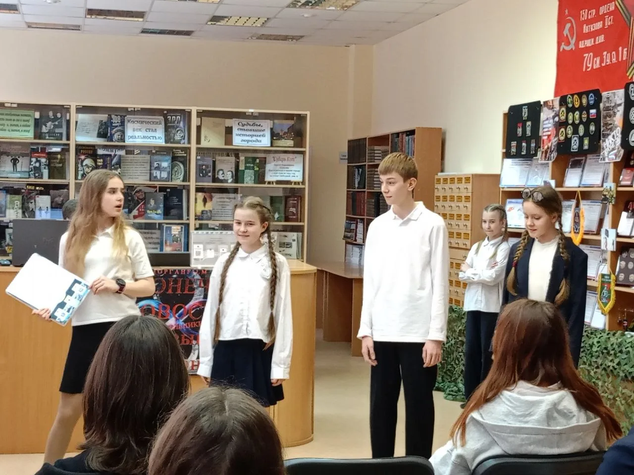 Затем их ждала захватывающая викторина "Знаем ли мы литературные произведения?". Ребята с азартом искали ответы на вопросы, погружаясь в мир книг, представленных на выставке "Золотые страницы классики". Особую изюминку добавило то, что ответы они находили в виде цитат, которые затем с удовольствием зачитывали.