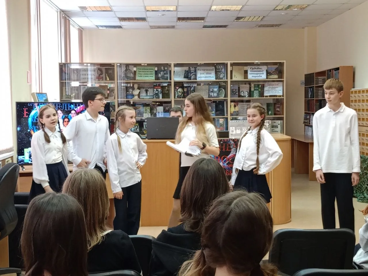 В начале мероприятия заведующая библиотекой Надежда Валериевна Волкова тепло поприветствовала участников и зрителей, поздравила режиссёра Александра Мазаева и юных корреспондентов с пятилетием передачи, а также отметила символичность того, что открытие Недели детской и юношеской книги совпало с презентацией книги, которая, как и библиотека, сохраняет важные истории и события.