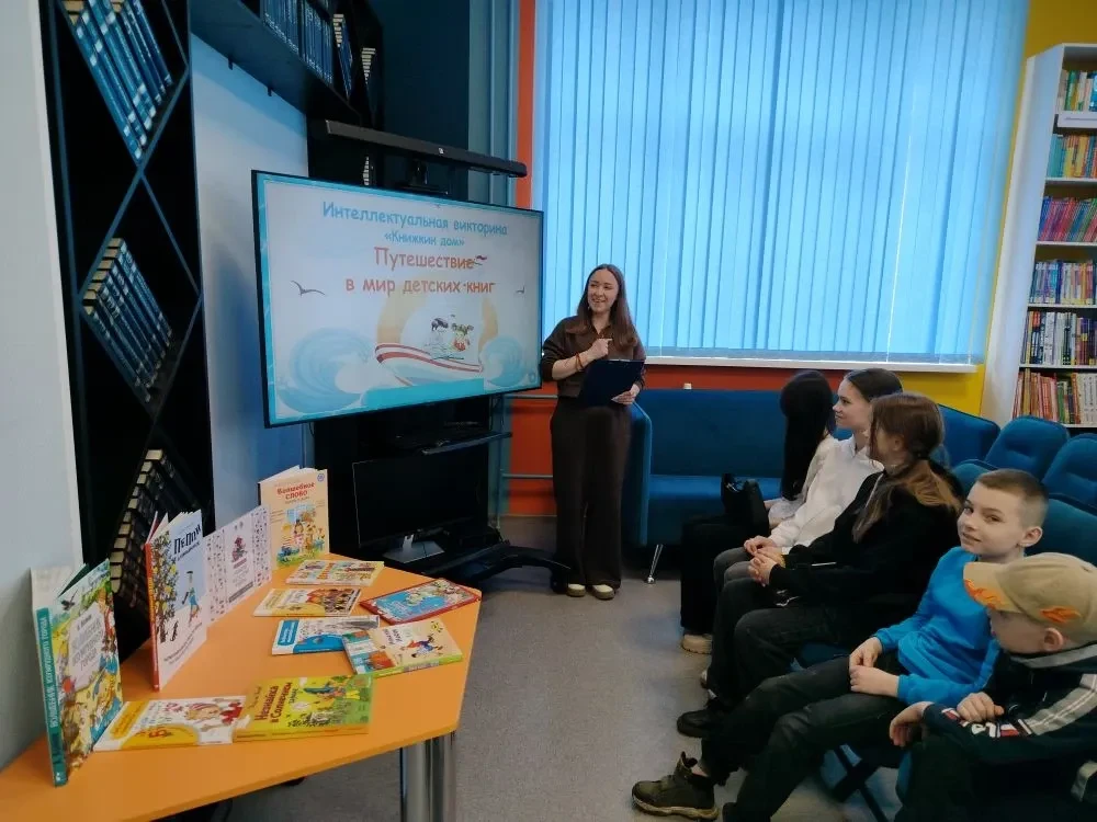 В библиотеке в рамках Года единства народов России и Недели детской и юношеской книги прошла увлекательная игра-викторина "Книжкин дом". Неделя детской книги – ежегодная всероссийская акция, направленная на популяризацию литературы для детей. Впервые праздник детской книги прошёл 26 марта 1943 года по инициативе детского писателя Льва Кассиля. Встреча началась с поздравления читателей с праздником и с рассказа об истории возникновения праздника. Затем ребята активно участвовали в обсуждении любимых историй, отвечали на вопросы викторины, вспоминали отрывки из стихов, называли сказочные волшебные предметы, отгадывали веселые загадки. Отдельно была оформлена книжная выставка, посвящённой детским писателям. Мероприятие прошло весело и задорно, оно было направлено на привлечение детей к чтению, развитие их интереса к книгам и литературным произведениям.
