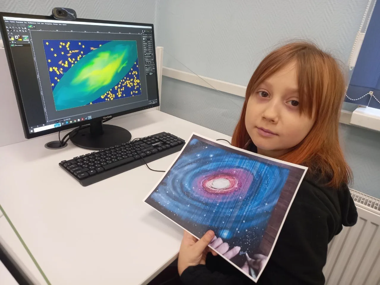 В библиотеке в рамках практического курса по графическому редактору GIMP "Gimpики" прошло последнее занятие трёхмесячного курса: "Космическое путешествие "Меж звёзд и галактик".