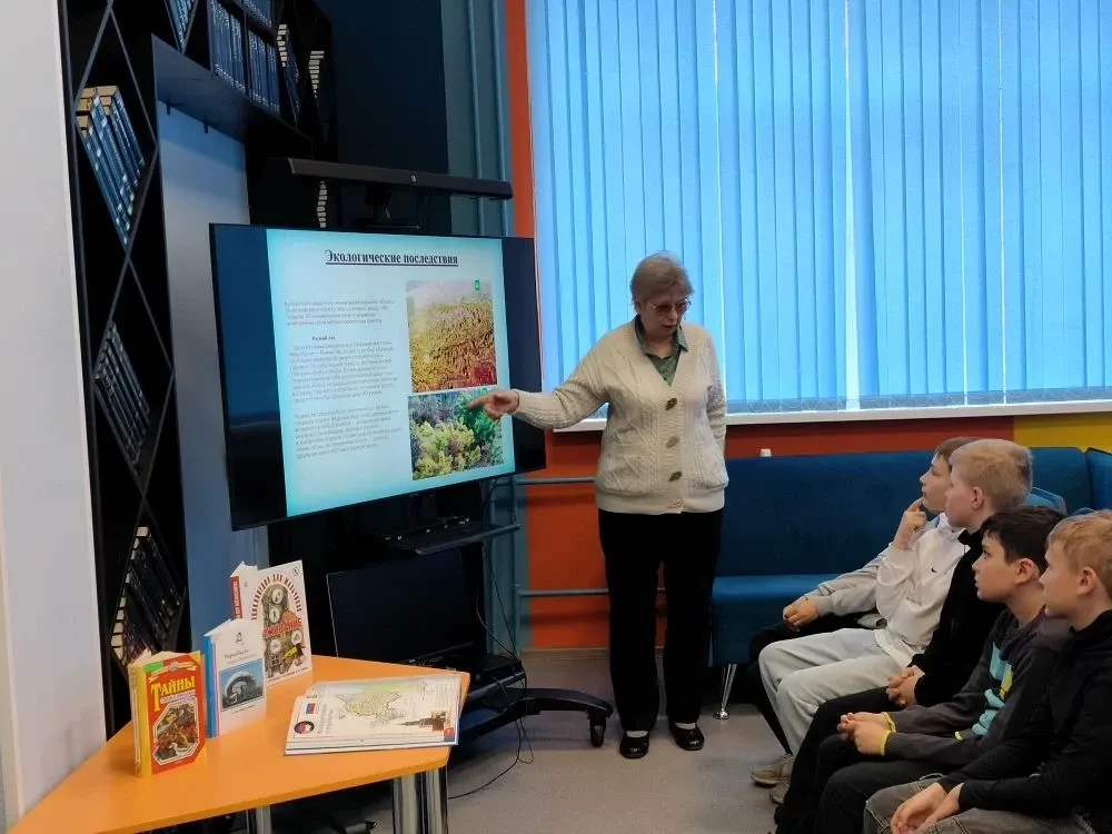 Затем сотрудник библиотеки рассказал ребятам о том, что 30 апреля 2026 года выдающемуся советскому писателю-натуралисту Юрию Дмитриевичу Дмитриеву исполнилось бы 100 лет со дня рождения.