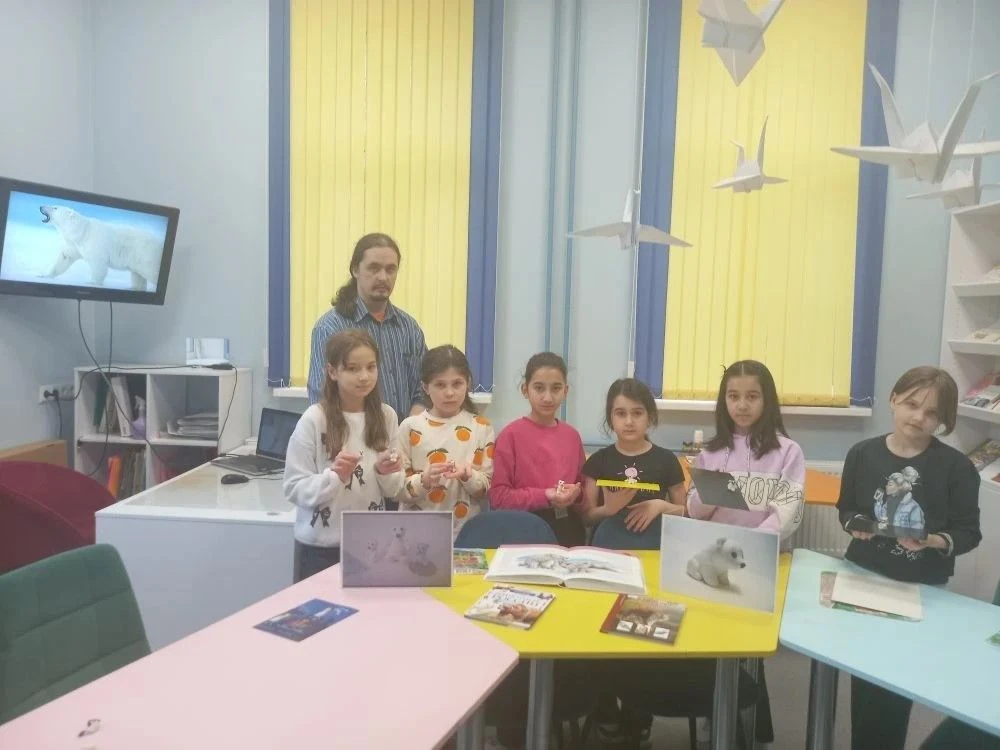 В библиотеке в рамках клуба любителей природы "Юный натуралист" прошёл познавательный час "Белый медведь".