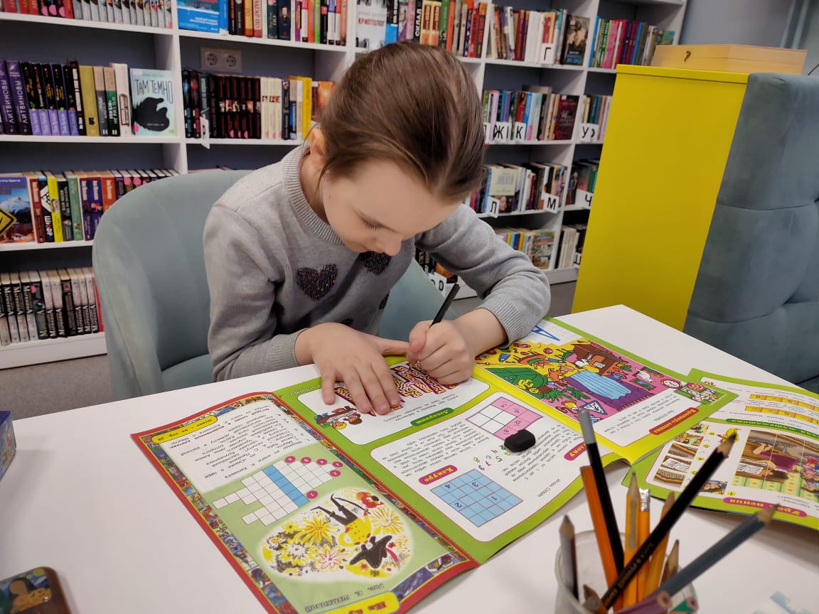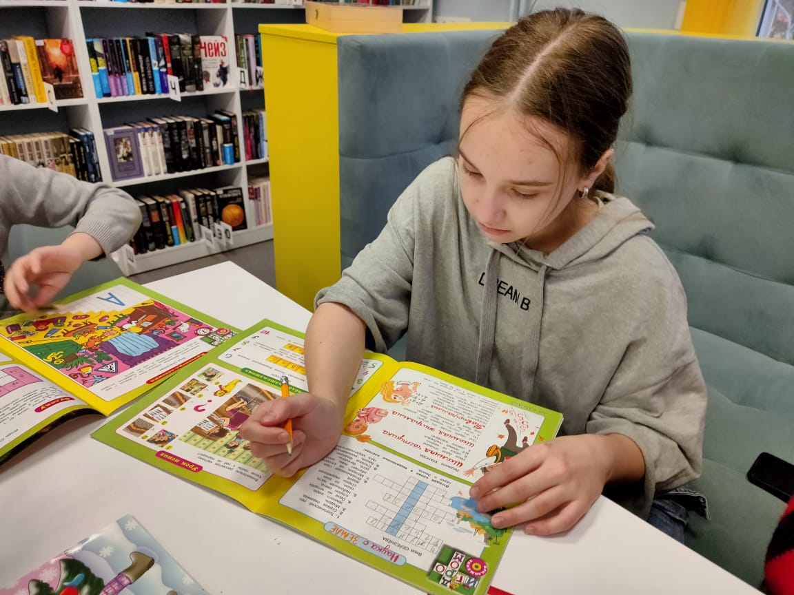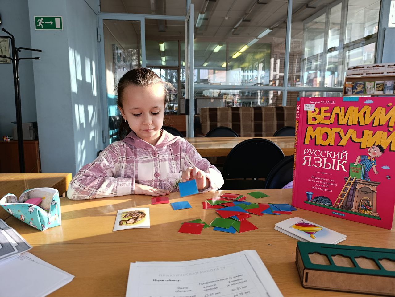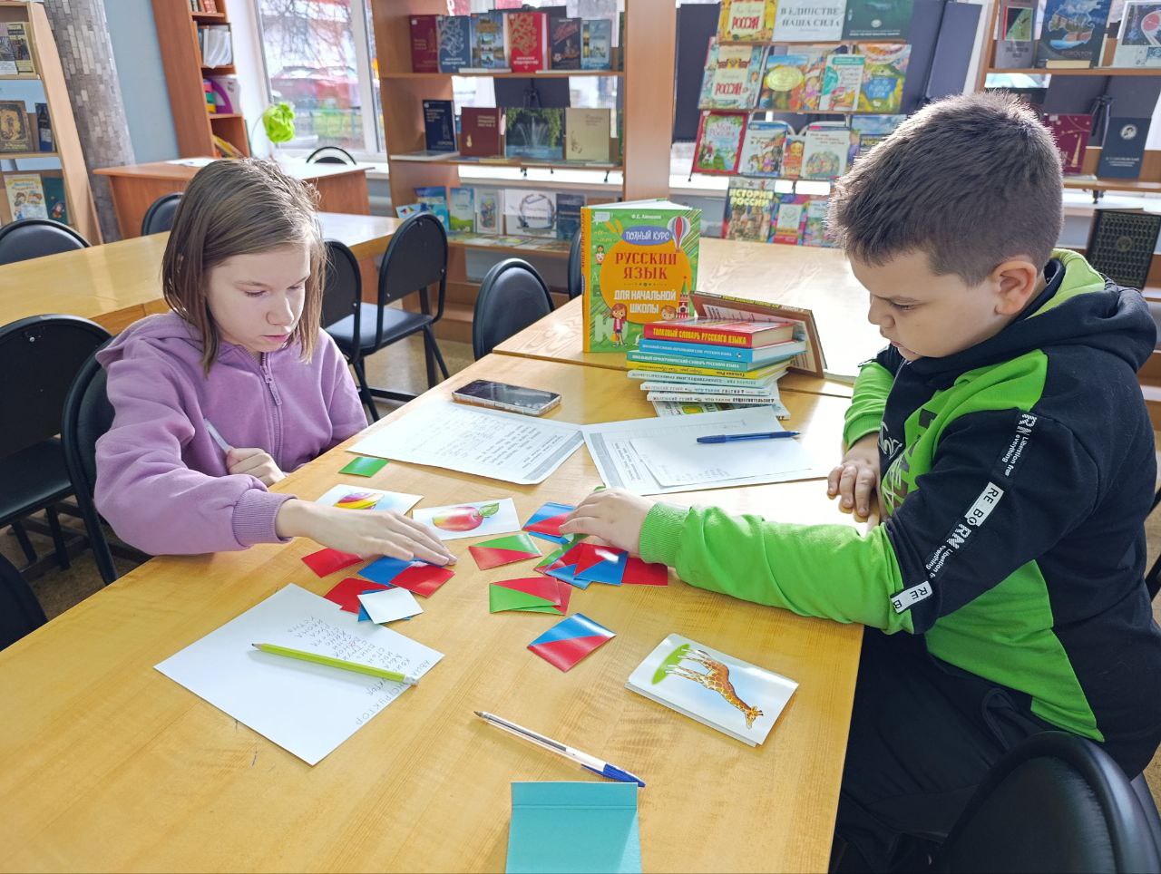 В библиотеке в рамках мастер-класса "Отличник" ребята разных возрастов выполняли разнообразные задания по русскому языку.