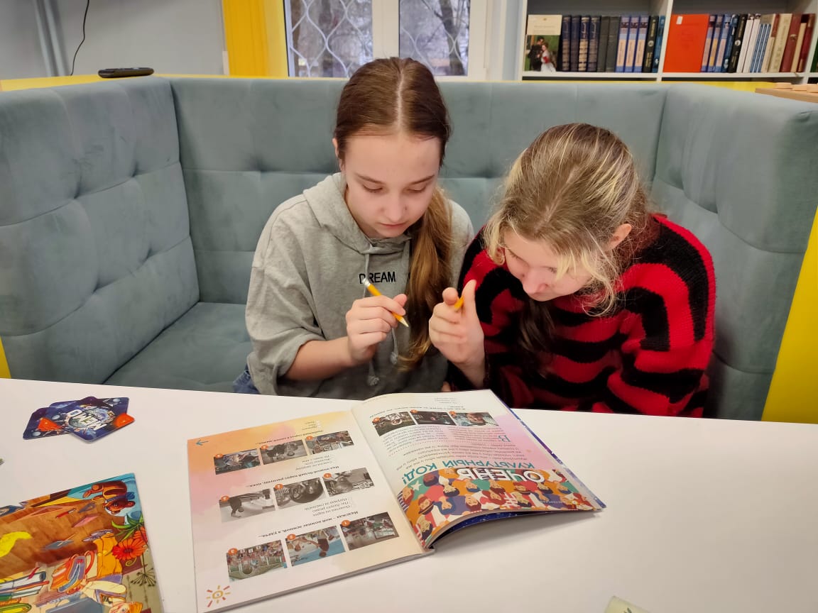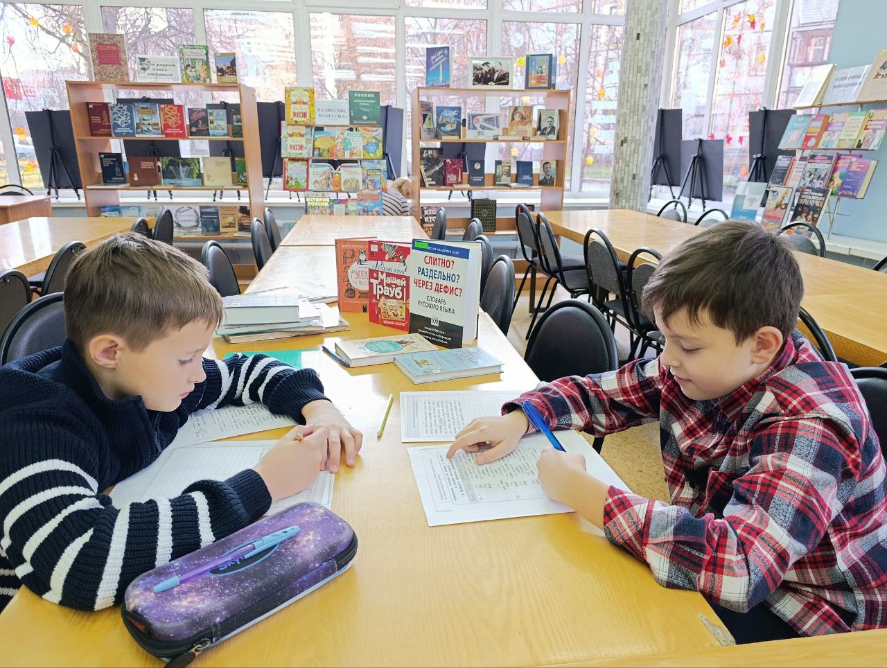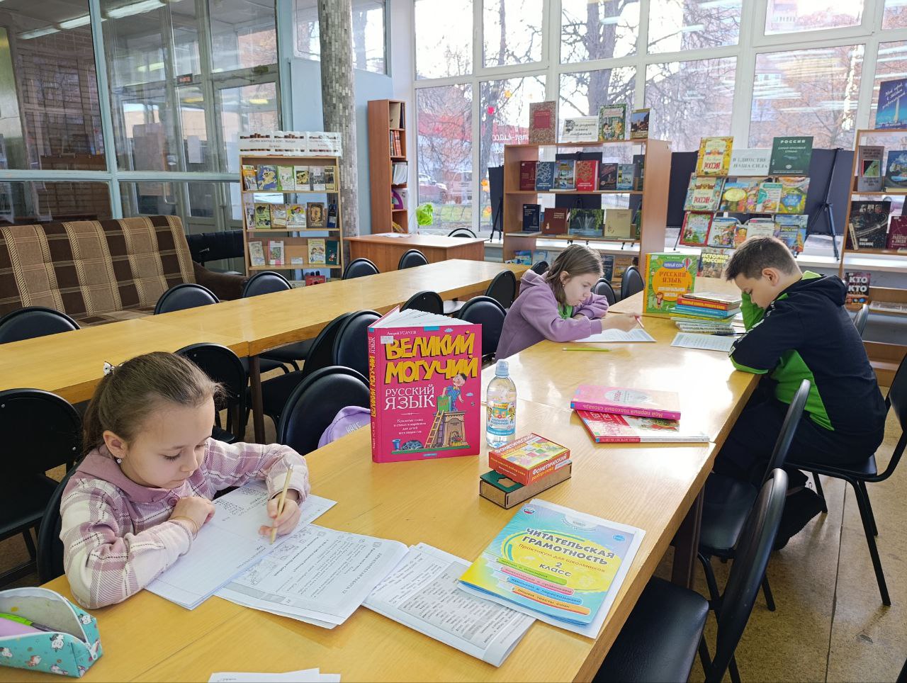 В библиотеке в рамках мастер-класса "Отличник" ребята выполняли задания по русскому языку.