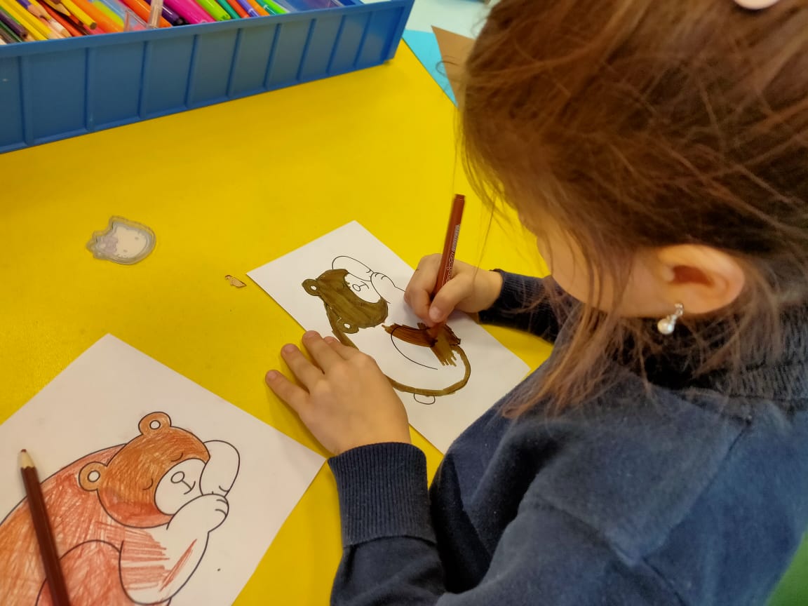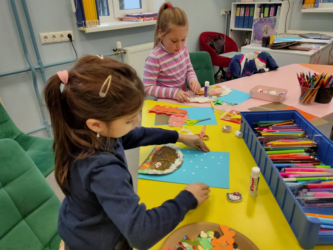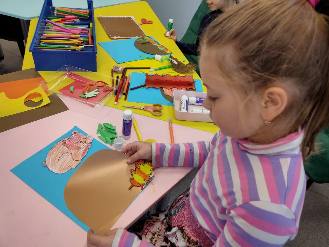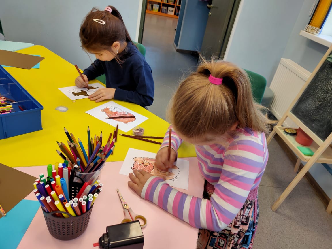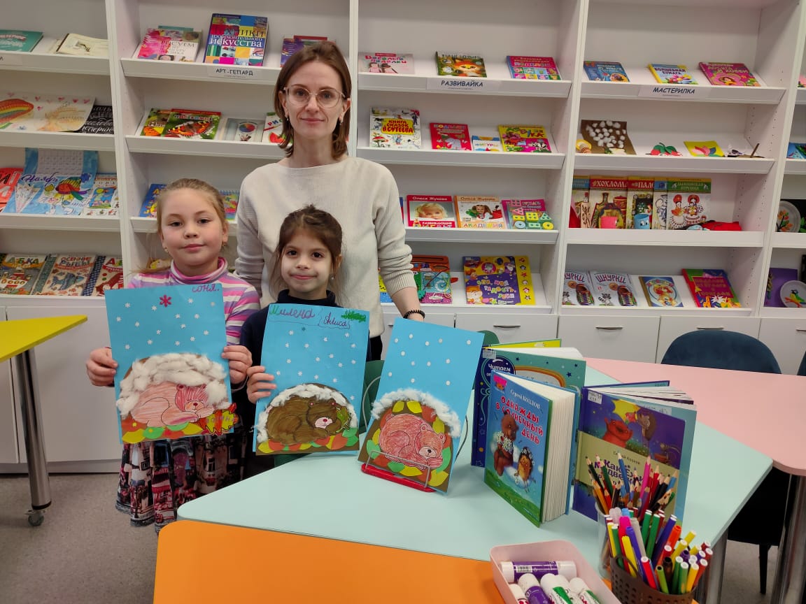 В библиотеке прошло занятие творческого кружка "Мастерилка". Дети познакомились со сказкой Татьяны Александровой "Медвежонок Бурик". Это история про маленького, забавного и доброго медвежонка, который с любопытством познаёт лесной мир вокруг него. Затем ребята изготовили аппликацию "Медвежий сон" и размышляли о жизни бурого медведя и особенностях зимней спячки косолапого.