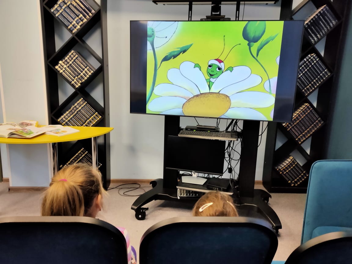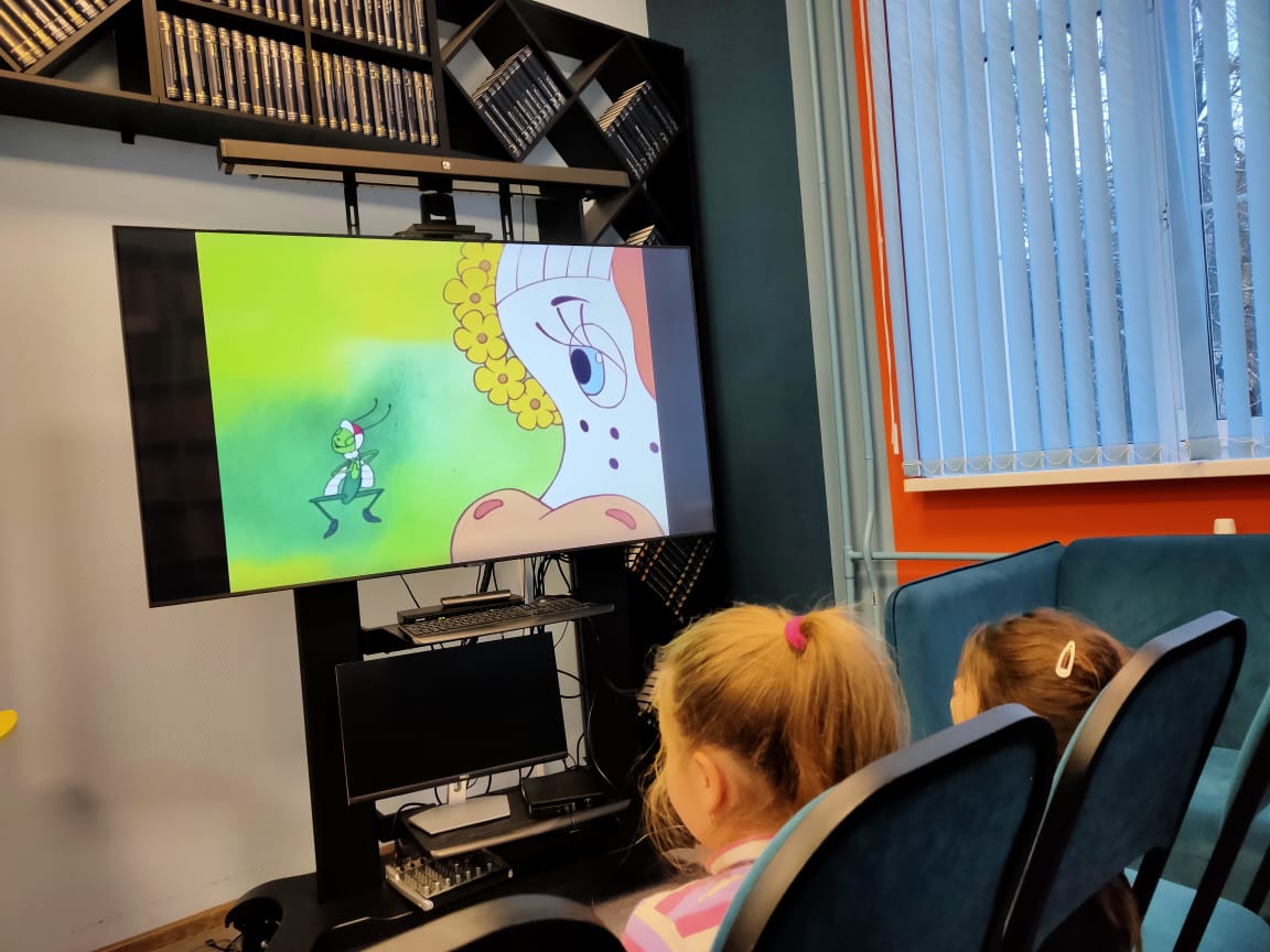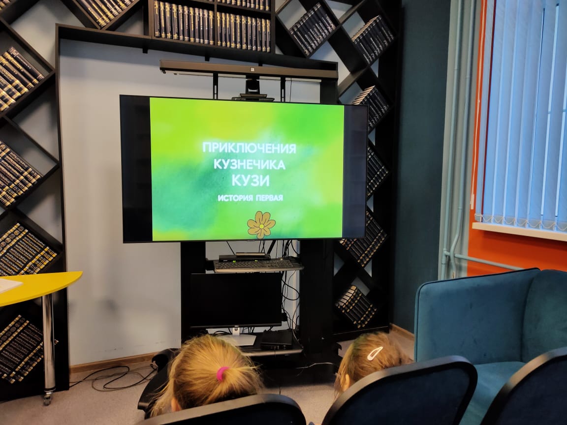 В библиотеке на встрече клуба любителей мультфильмов "Мульти-пульти" были показаны советские музыкальные рисованные мультфильмы "Приключения кузнечика Кузи" и "Новые приключения кузнечика Кузи" по мотивам сказки Михаила Пляцковского "Дневник Кузнечика Кузи". Удивительные истории о кузнечике, который не может жить без приключений. Красивая картинка, весёлые песни и необычные приключения ждут всех, кто начинает смотреть мультфильм про Кузю. Порадуют даже самых маленьких зрителей.