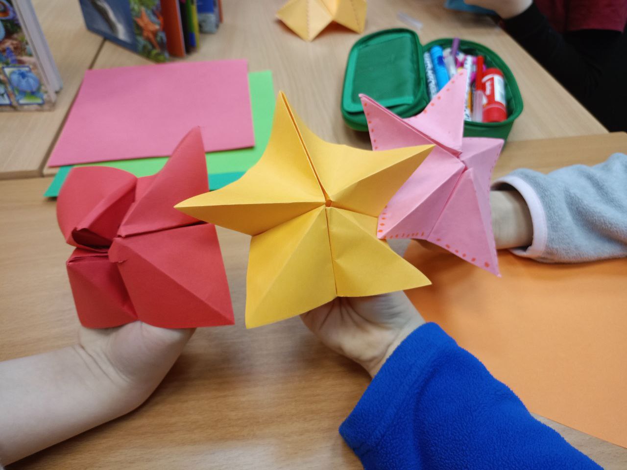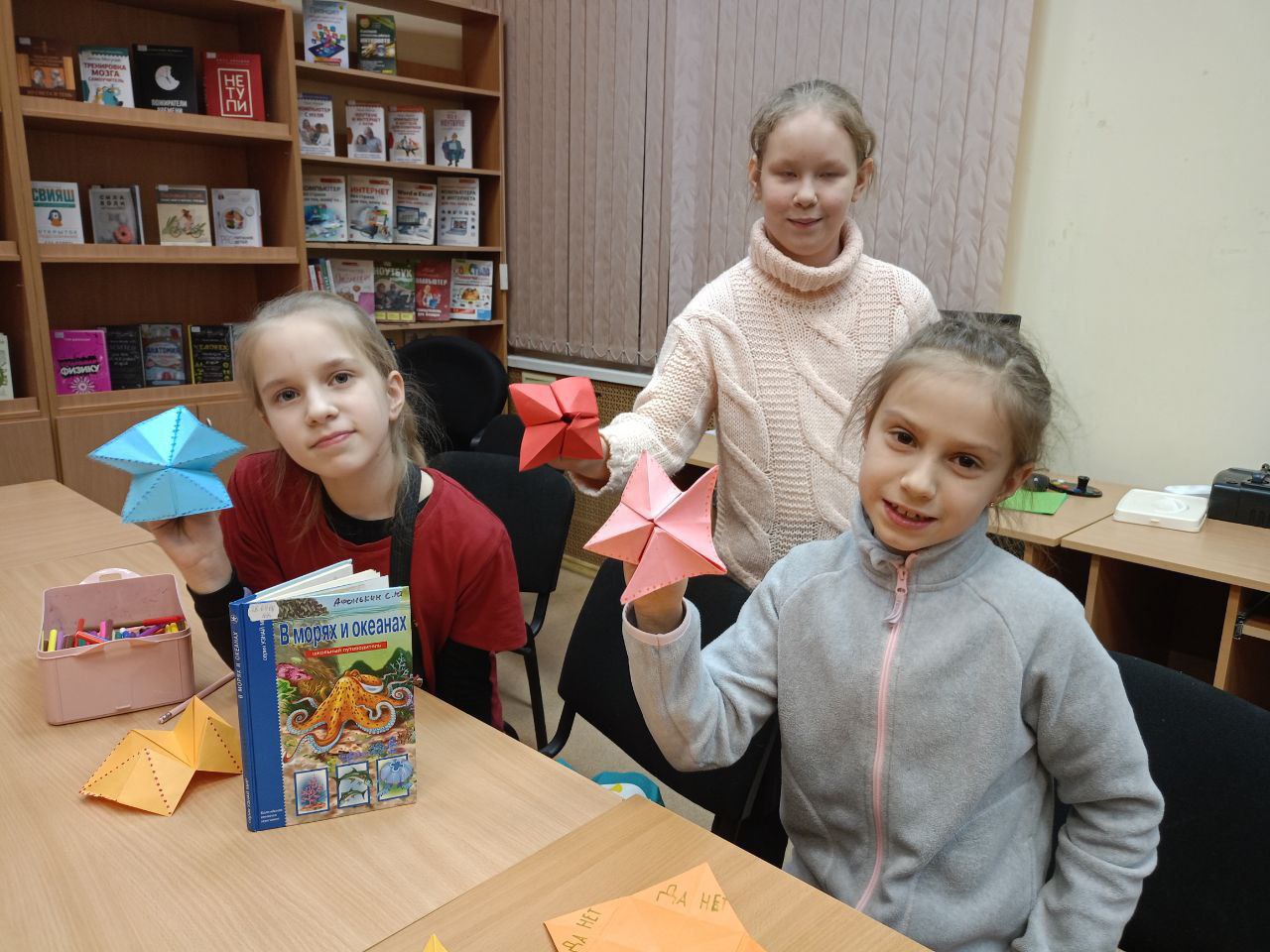 В библиотеке прошло занятие кружка "Чудо-ART". Юные читатели отправились в виртуальное путешествие по морям и океанам. Изучая энциклопедии и журналы ребята познакомились с обитателями морского дна. Особый интерес вызвали морские звёзды. Участники узнали много интересной информации и сделали из яркой разноцветной бумаги в технике оригами этих морских существ.