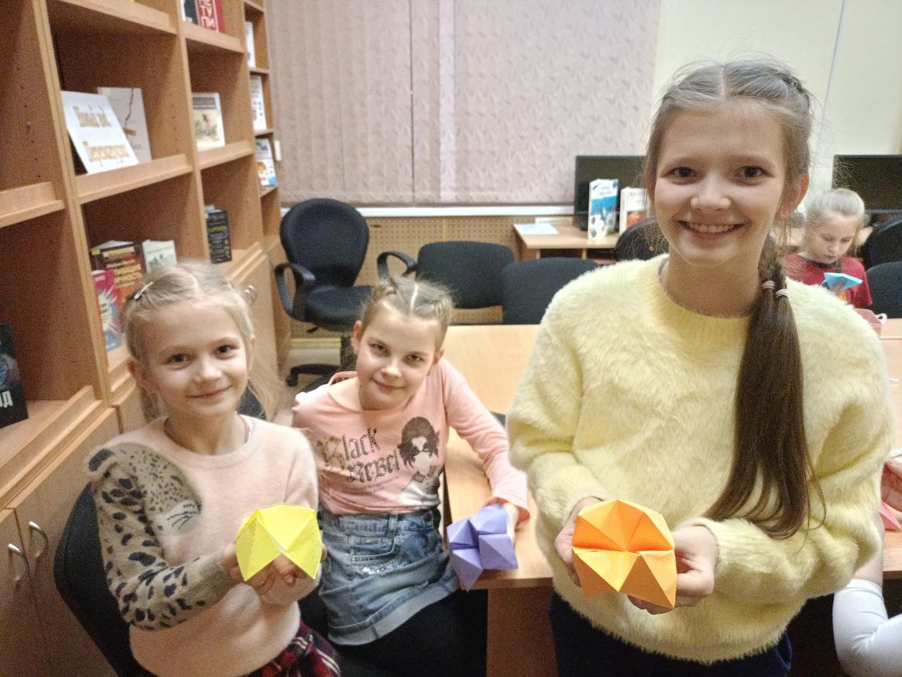 Затем, вдохновившись сюжетом, юные слушатели принялись мастерить зелёный цветок в технике оригами. Работа была сложной, но куст из малахитовых цветов был собран. Все участники мастер-класса остались довольны своими изделиями.