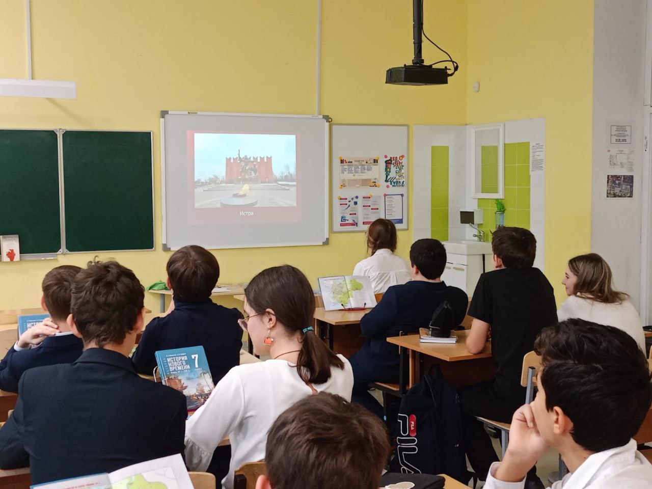 Час истории "На огненных московских рубежах" провели сотрудники библиотеки для учащихся Гимназии № 9.