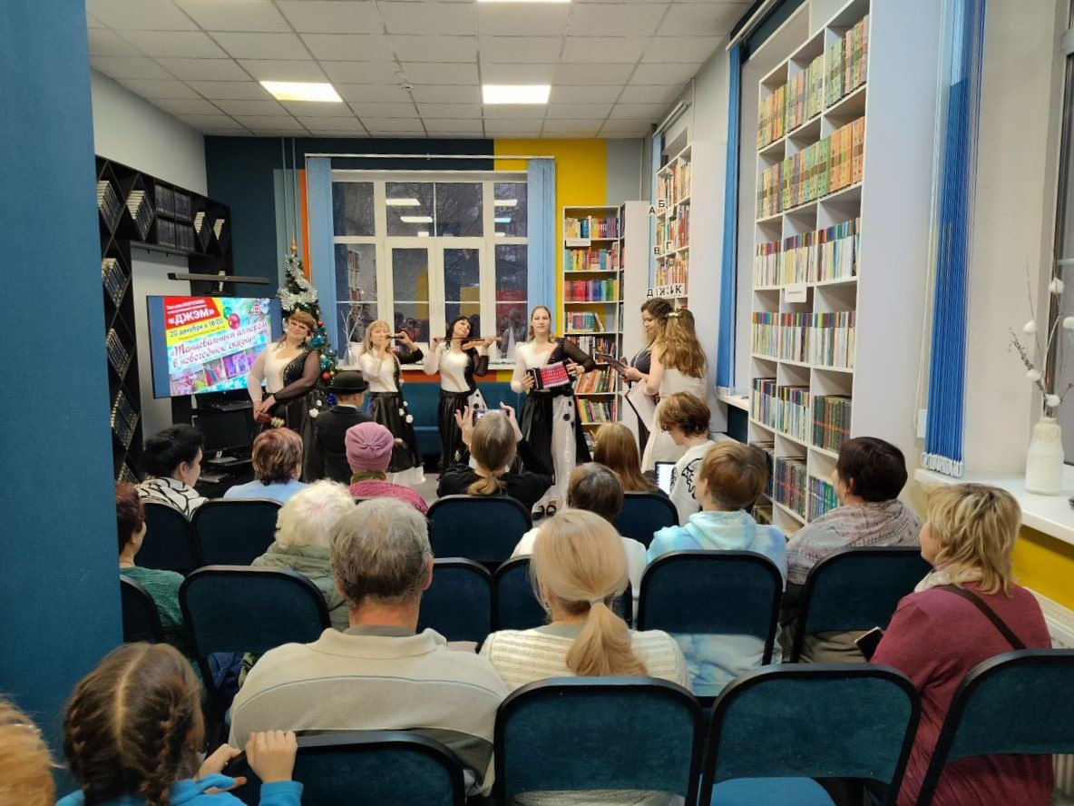 Новый год - яркий, загадочный, неповторимый, шумный, удивительный праздник, праздник сказочных чудес и волшебства с подарками и сюрпризами. В библиотеке состоялся концерт "Танцевальным аллюром в новогоднюю сказку" танцевального коллектива "Джэм" под руководством Татьяны Морозовой. Новогодний концерт сопровождался песнями и зажигательными танцами в разных жанрах. Праздник получился весёлым и интересным. В зале царила душевная атмосфера, гости получили огромное удовольствие и хорошее настроение.