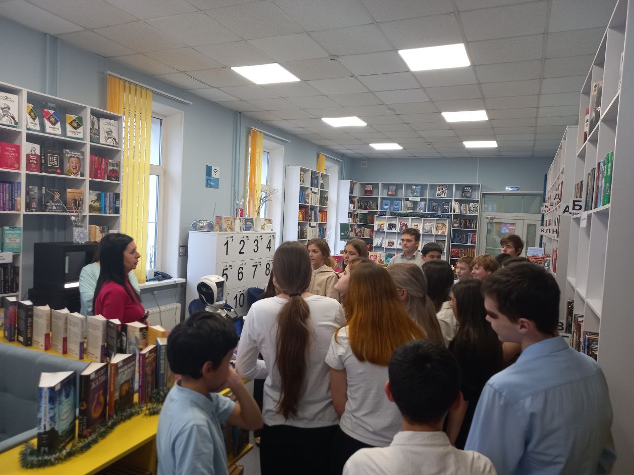 Сотрудники библиотеки пригласили учащихся 3Е класса МБОУ "Гимназия №5" в увлекательное новогоднее приключение — квиз-игру "Мозговой штурм: Новый год!".