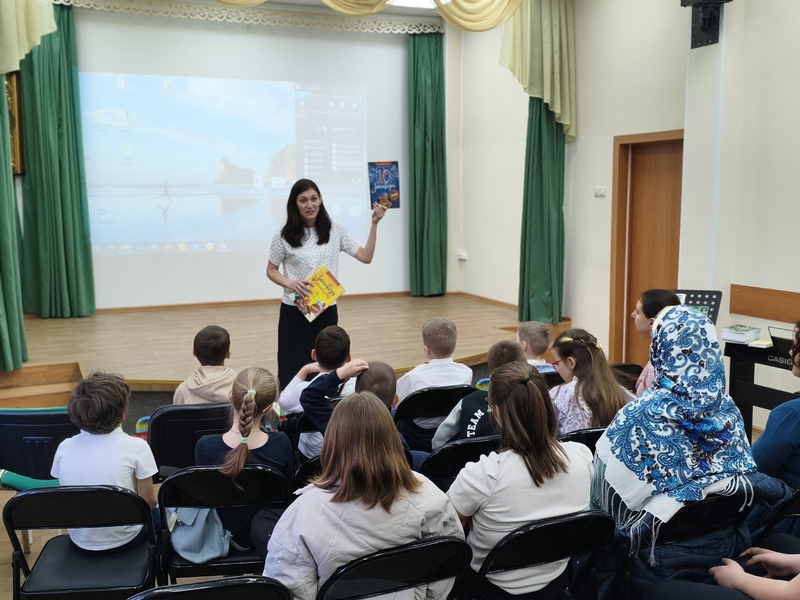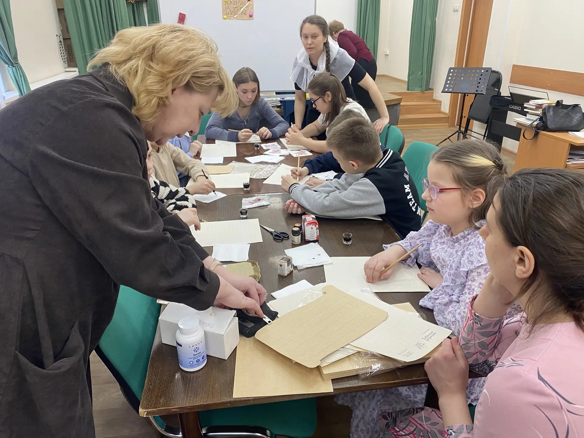 Звучали стихи, песни и рассказы об истории праздника. По приглашению педагогов Воскресной школы сотрудники библиотеки увлекательно рассказали о православных книгах, которые помогают воспитывать дух и справляться с жизненными трудностями. Звучали упоминания сказок Ганса Христиана Андерсена, рассказов Ивана Шмелёва, повестей Владимира Малягина. На сцену поднялись и юные читатели – ученики начальной школы – и трогательно представили прочитанные ими жития святых и прозаические произведения. Тему книжную продолжил мастер-класс по каллиграфии.