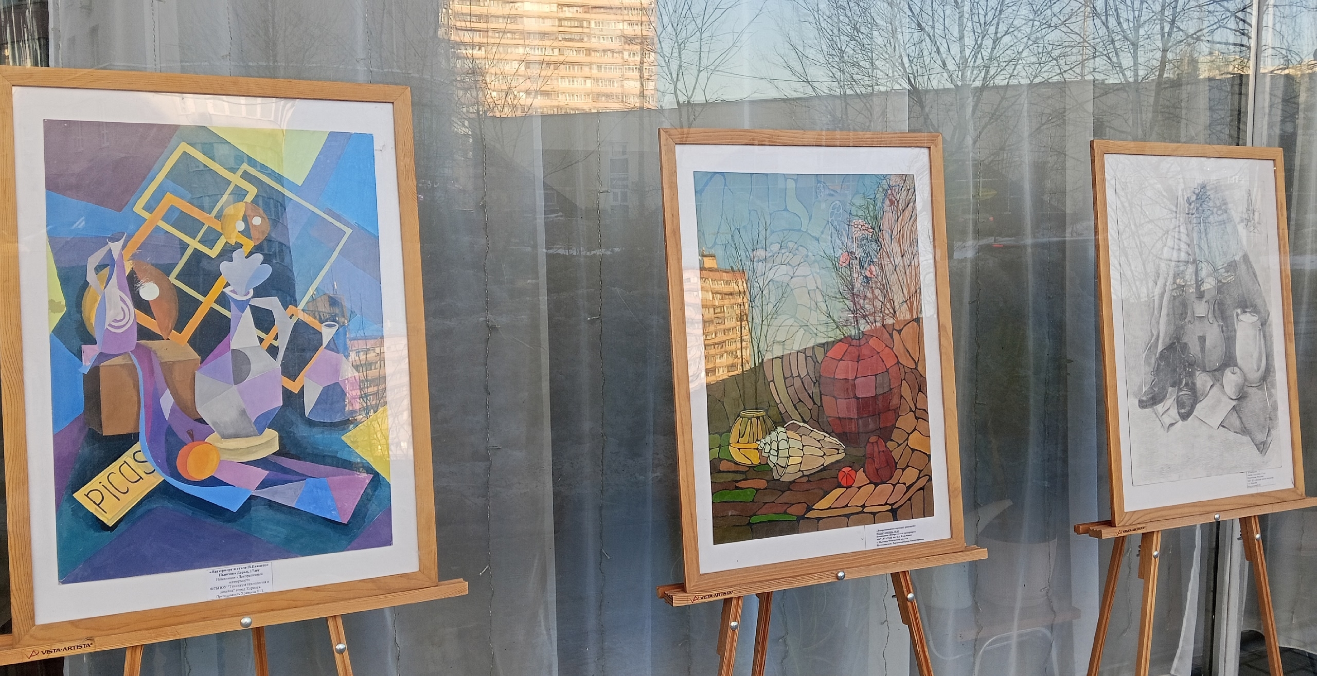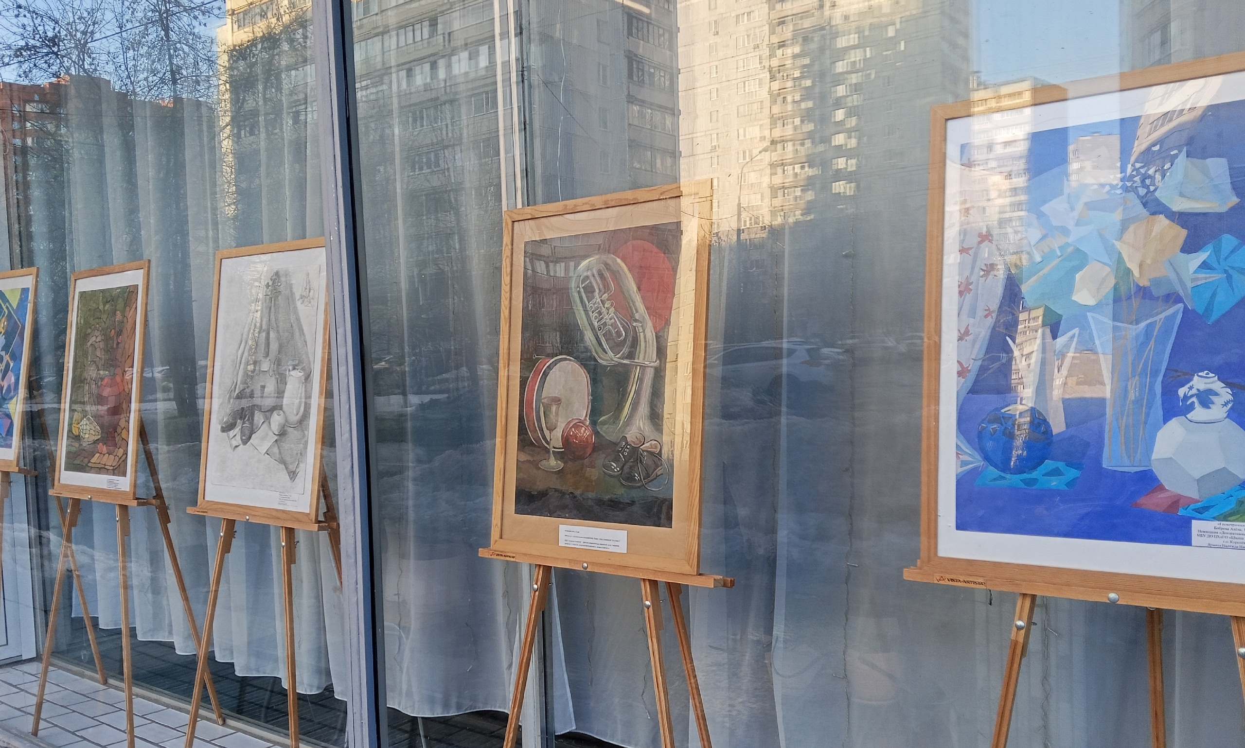 В витринном пространстве библиотеки открылась выставка творческих работ победителей VII Межрегионального конкурса натюрморта "Nature-morte", прошедшего в королёвском "Центре художественного мастерства".