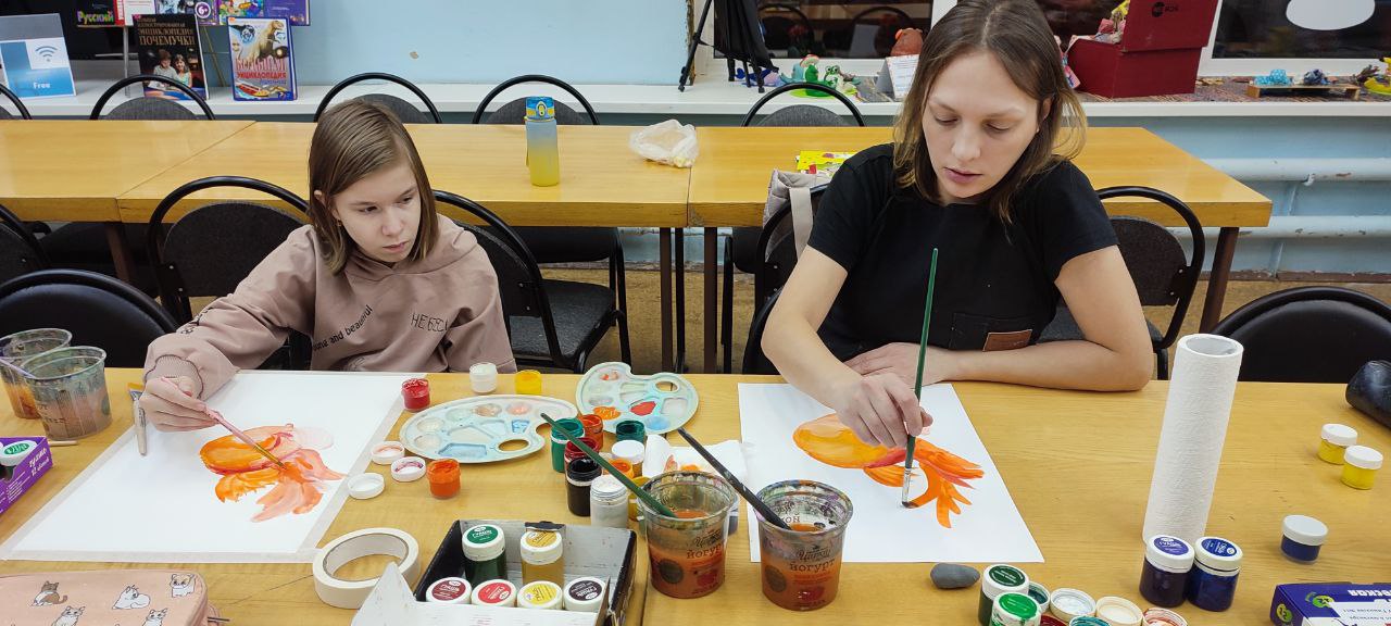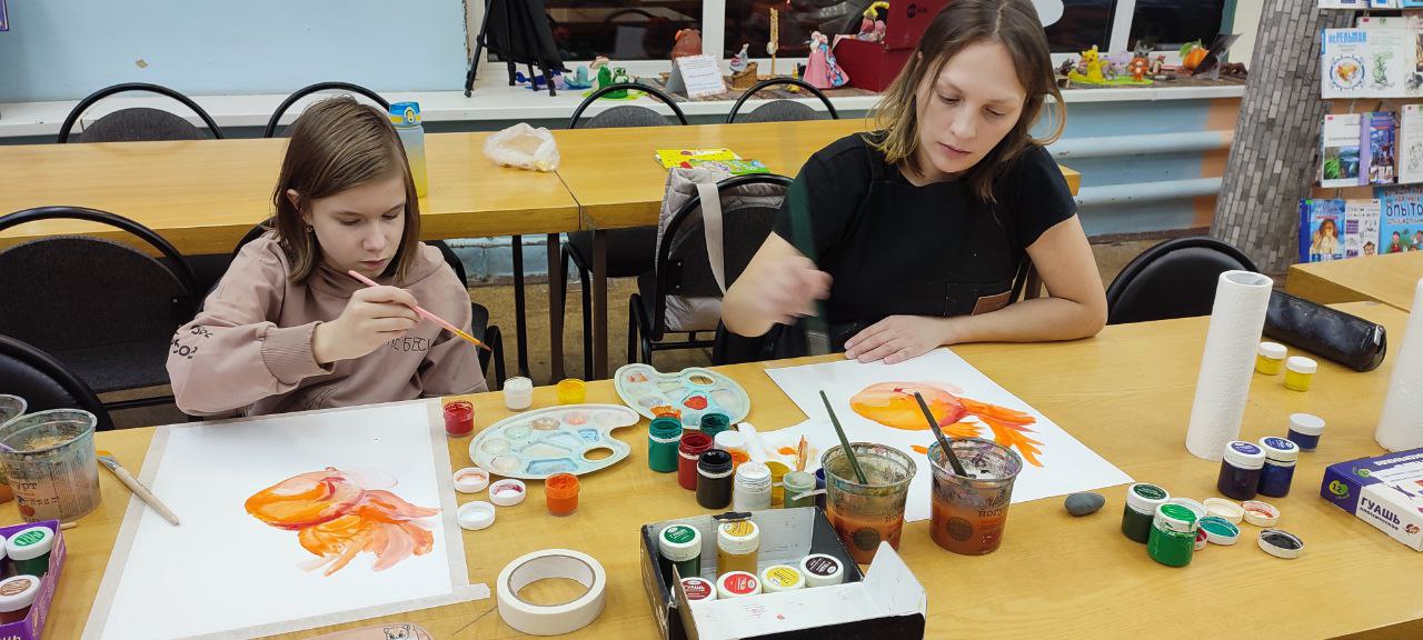 В библиотеке прошёл кружок рисования на тему "Золотая рыбка в изумрудном море". С помощью гуаши мы создавали настоящую сказку – золотую рыбку, исполняющую желания, в прохладных водах бирюзового моря. Мы учились смешивать цвета, чтобы получить волшебные оттенки сияющей рыбки и морской глубины. Теперь в каждом доме поселится не просто рисунок, а самый настоящий хранитель детских желаний!